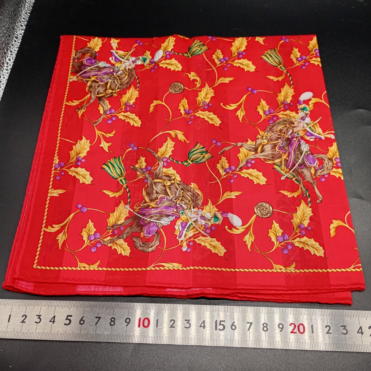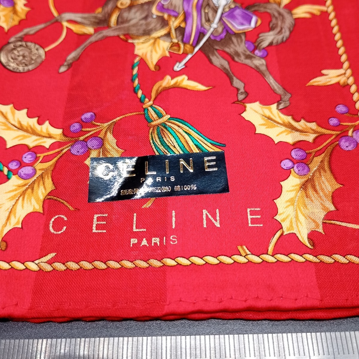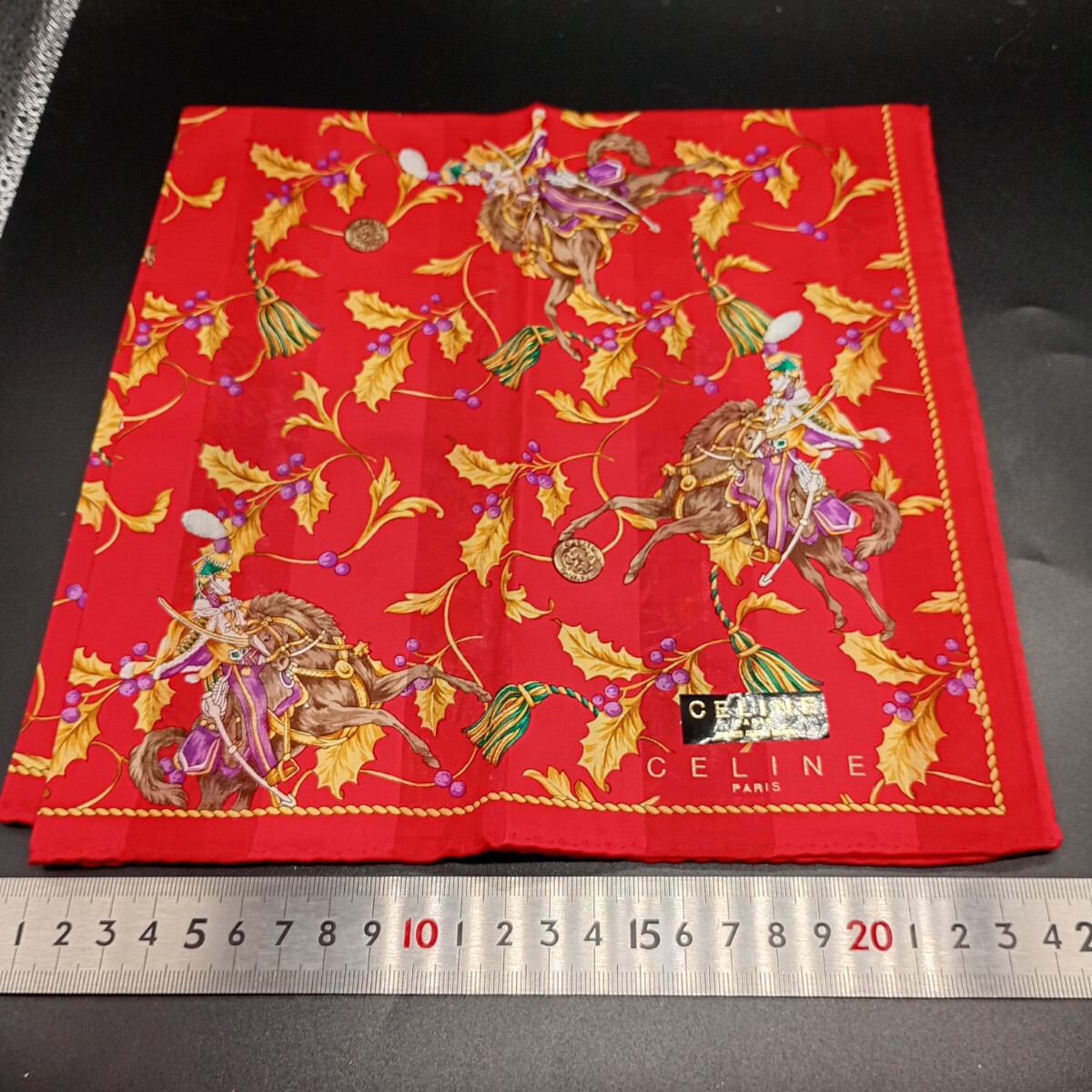 CELINE セリーヌ ハンカチ レッド ひいらぎ 乗馬 ふりロープ no.3023