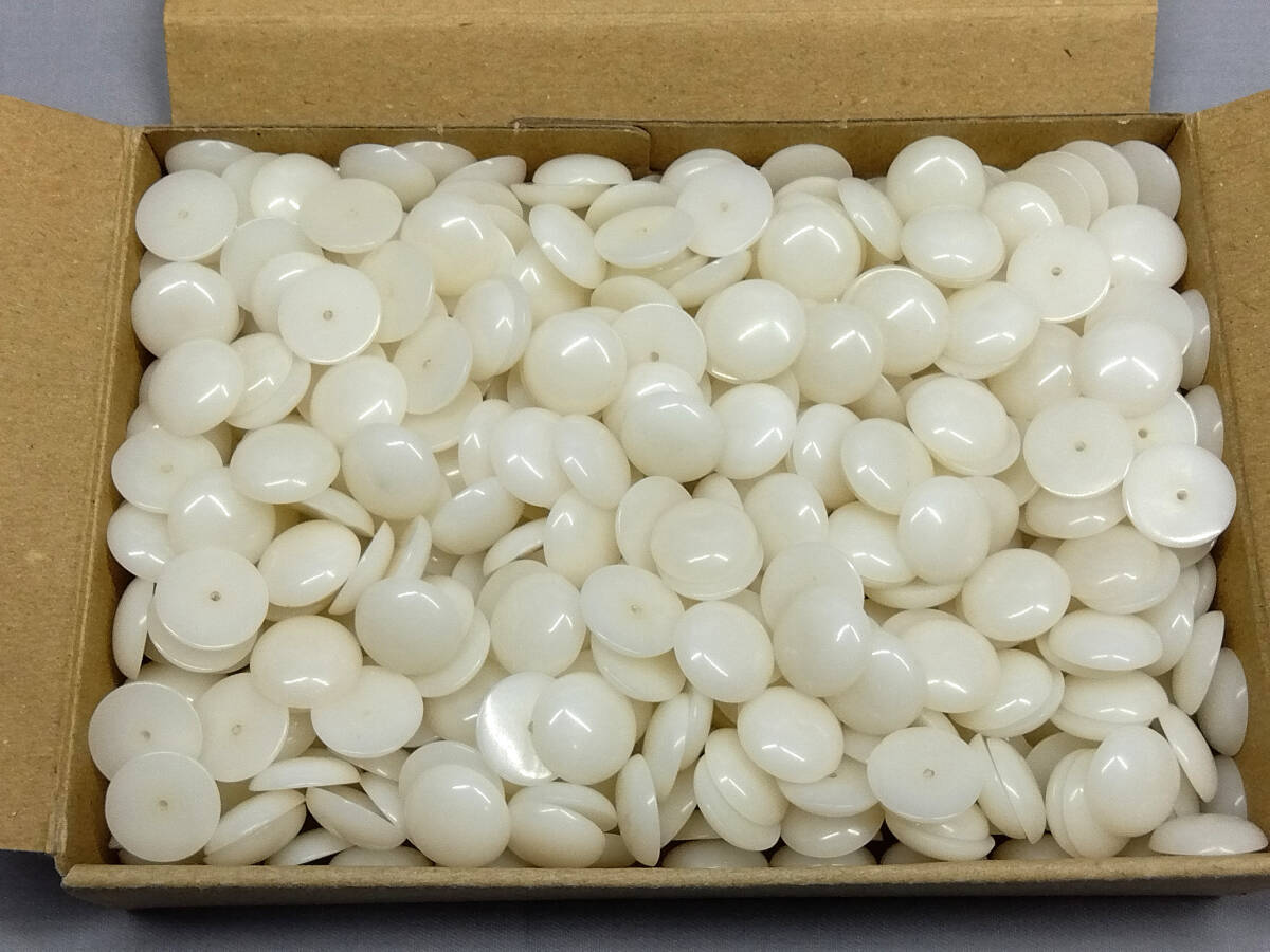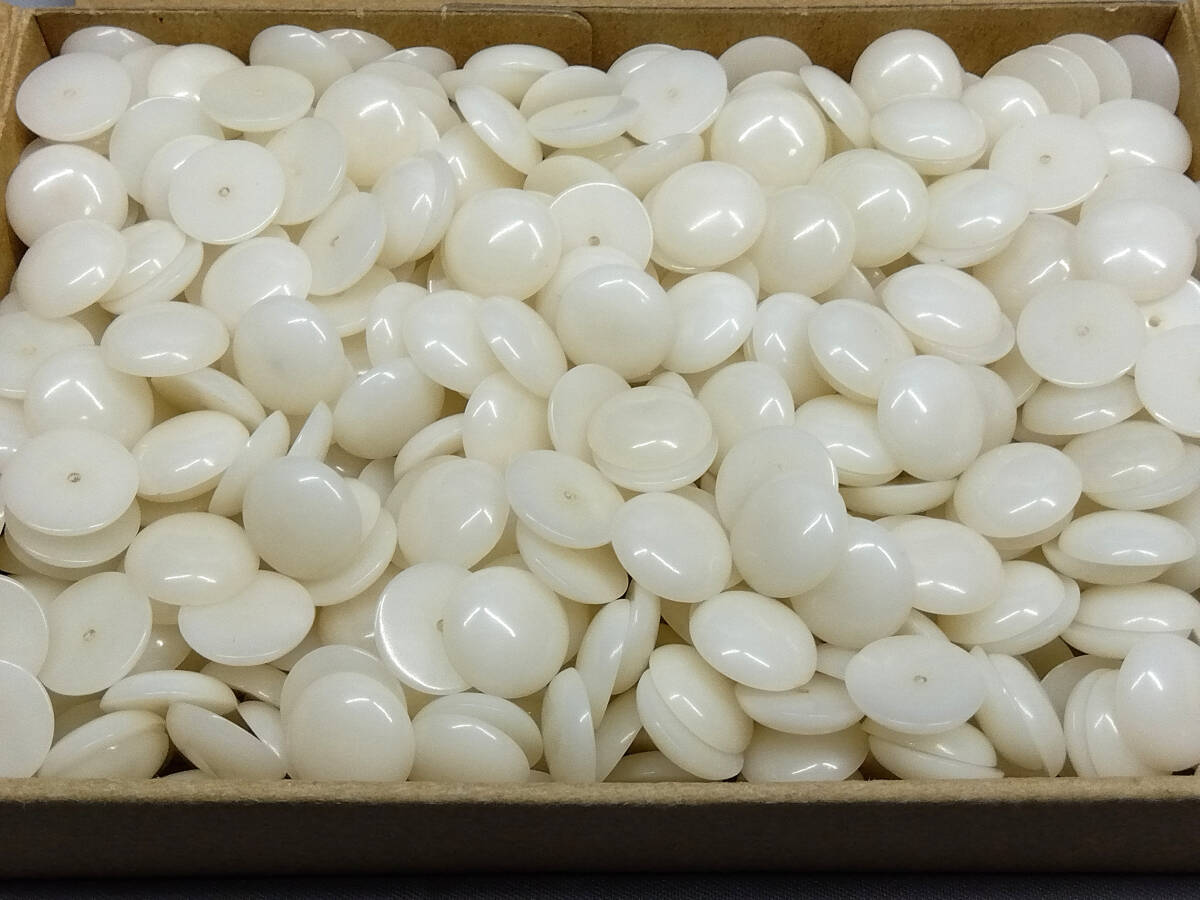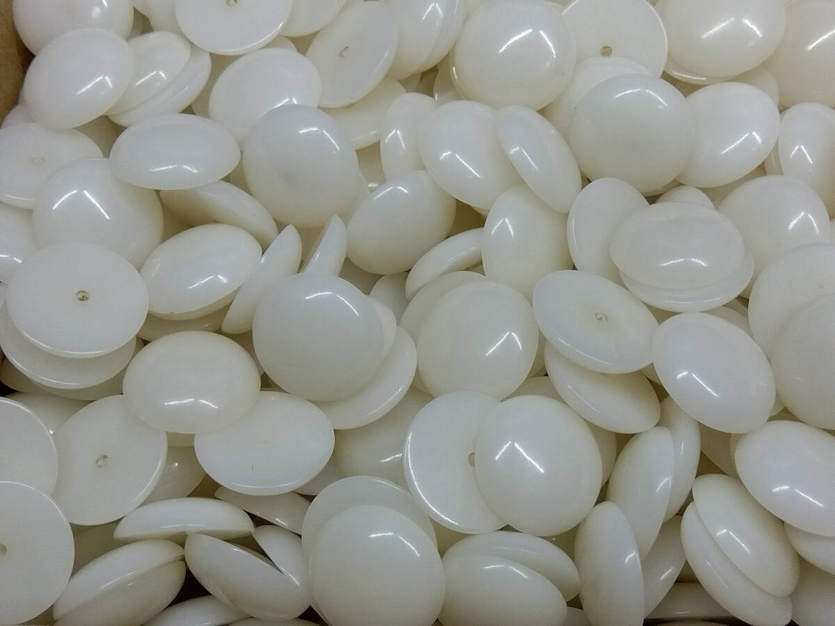 | 商品の ご説明 ユリア樹脂 すっぴん玉 約 13,5 mm 500 個です。 厚み 約 4mm 約 1,3mm 穴 深さ 約 3mm 程度です。 30年以上は経ってますので 黄ばんでます。 | ||