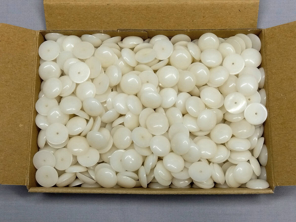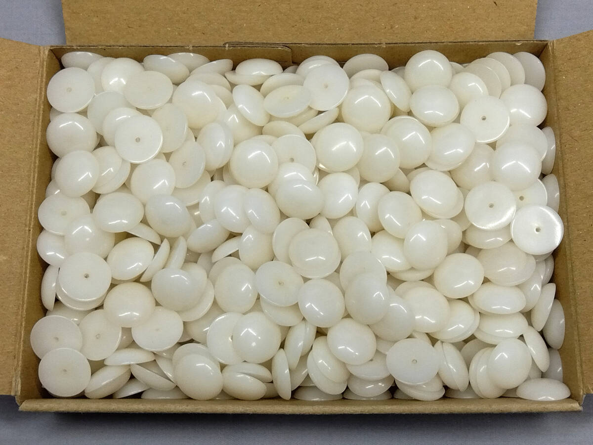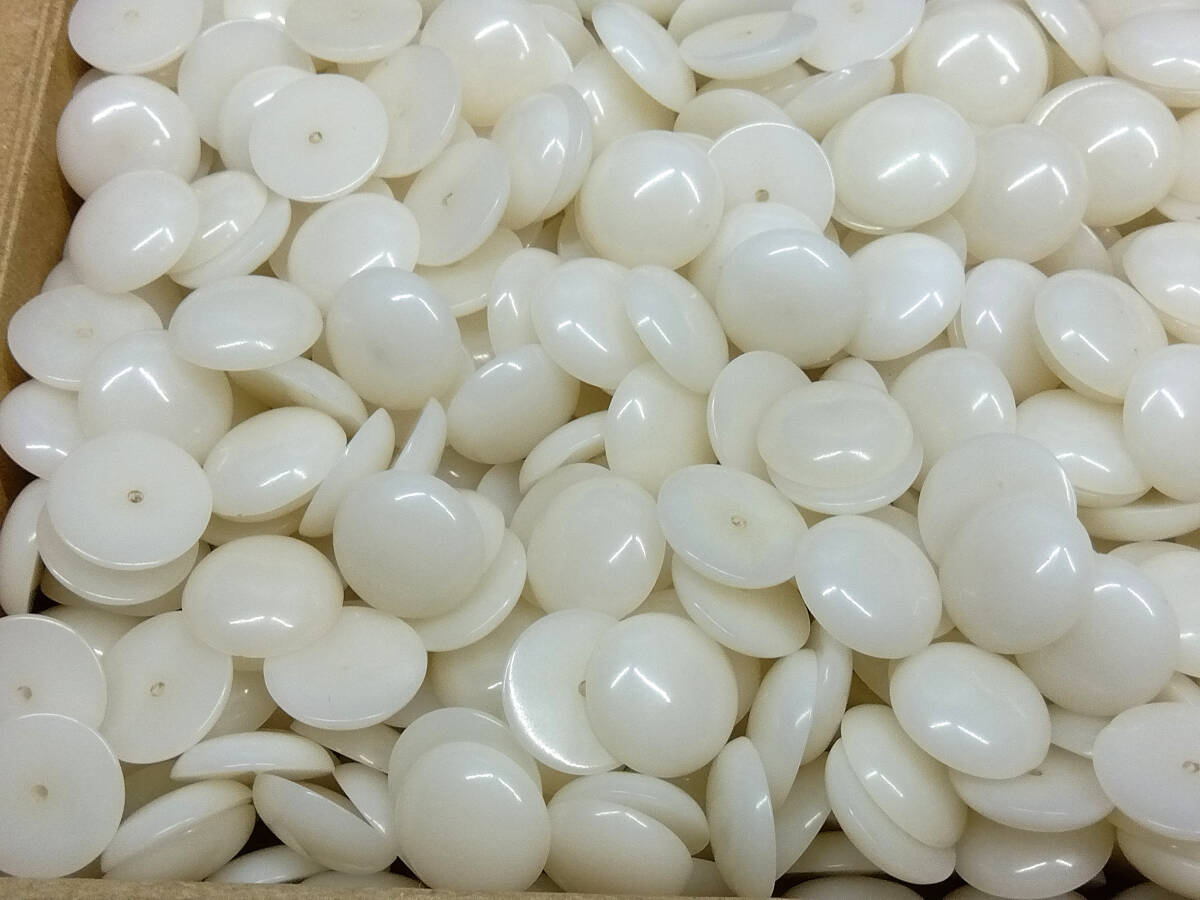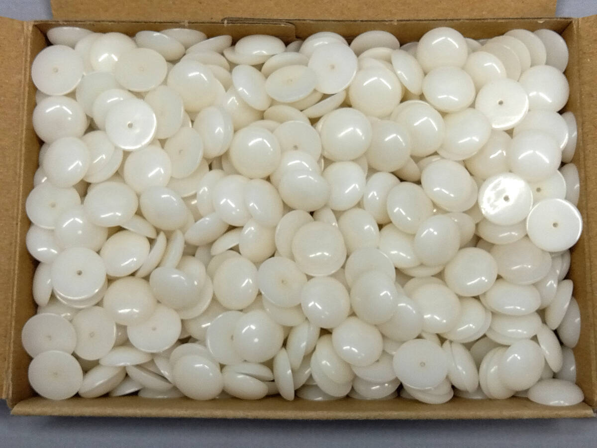 | 商品の ご説明 ユリア樹脂 すっぴん玉 約 13,5 mm 500 個です。 厚み 約 4mm 約 1,3mm 穴 深さ 約 3mm 程度です。 30年以上は経ってますので 黄ばんでます。 | ||