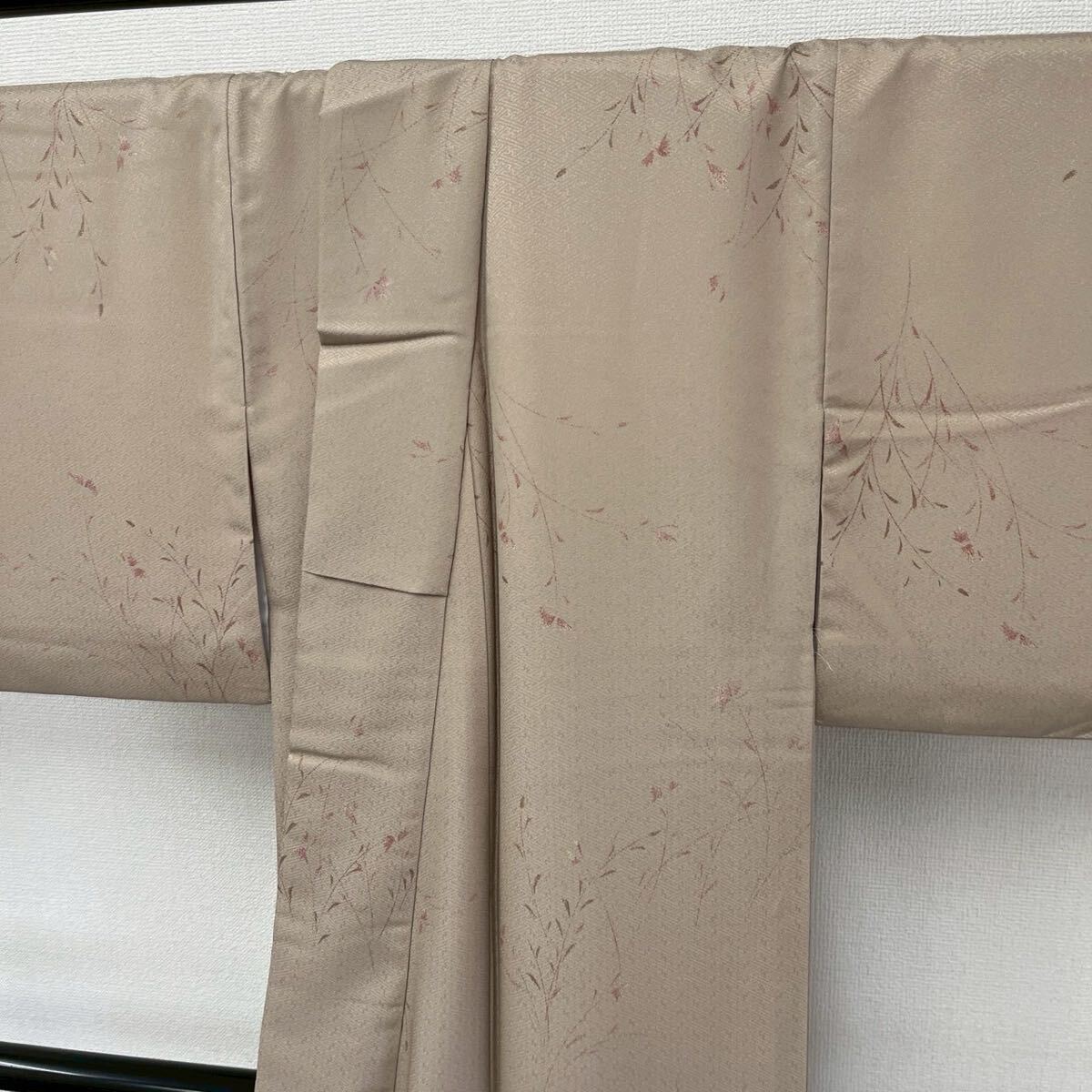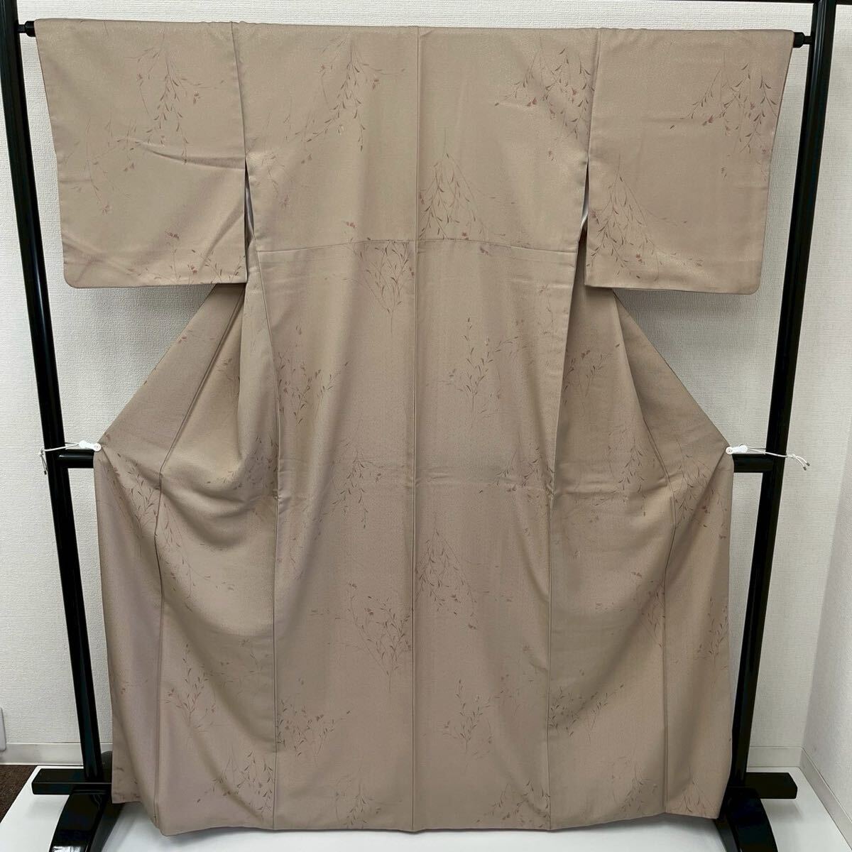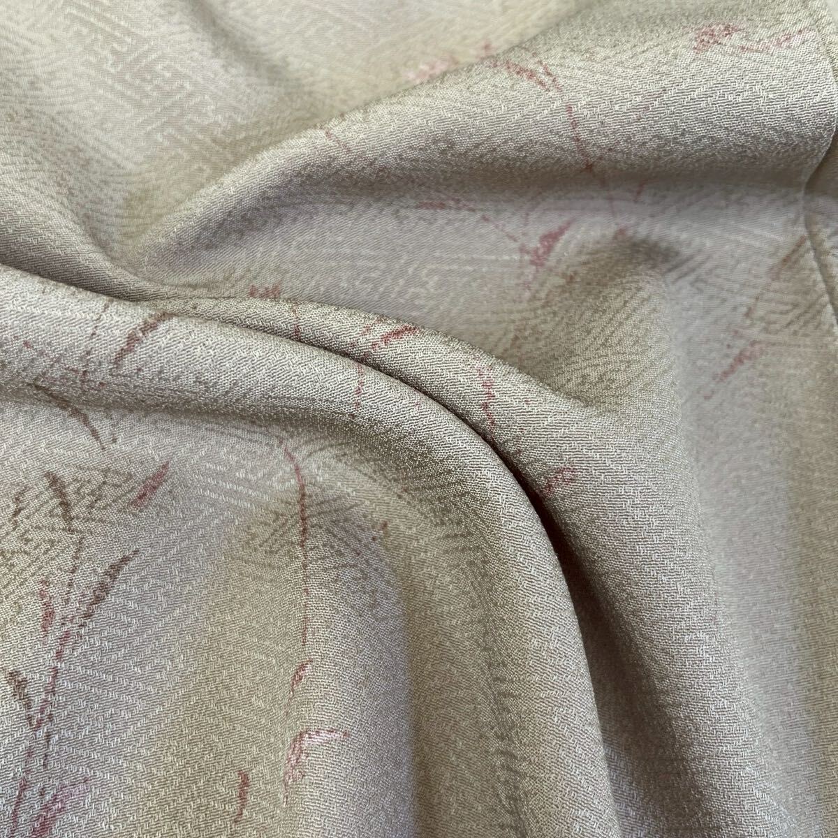 【蒼】小紋 ちりめん 上品な花模様の染め 紗綾形地紋 着物 正絹 Q-027