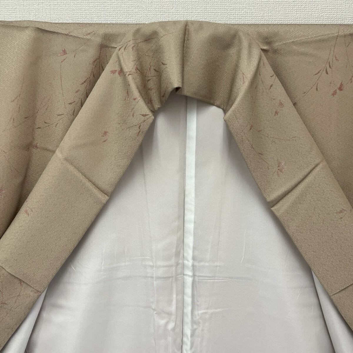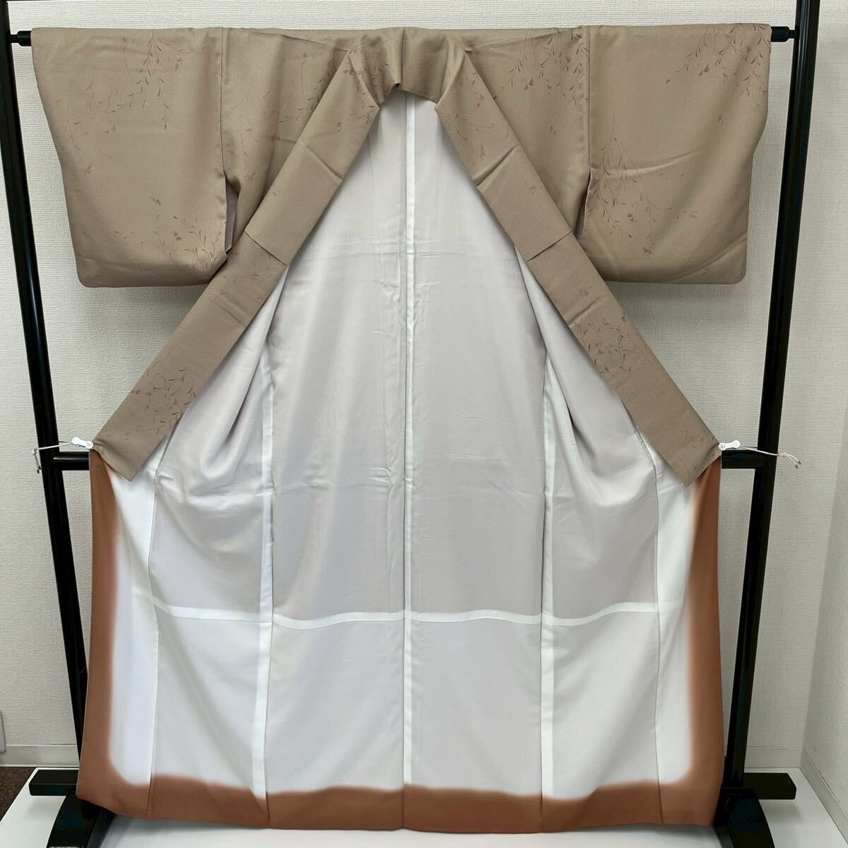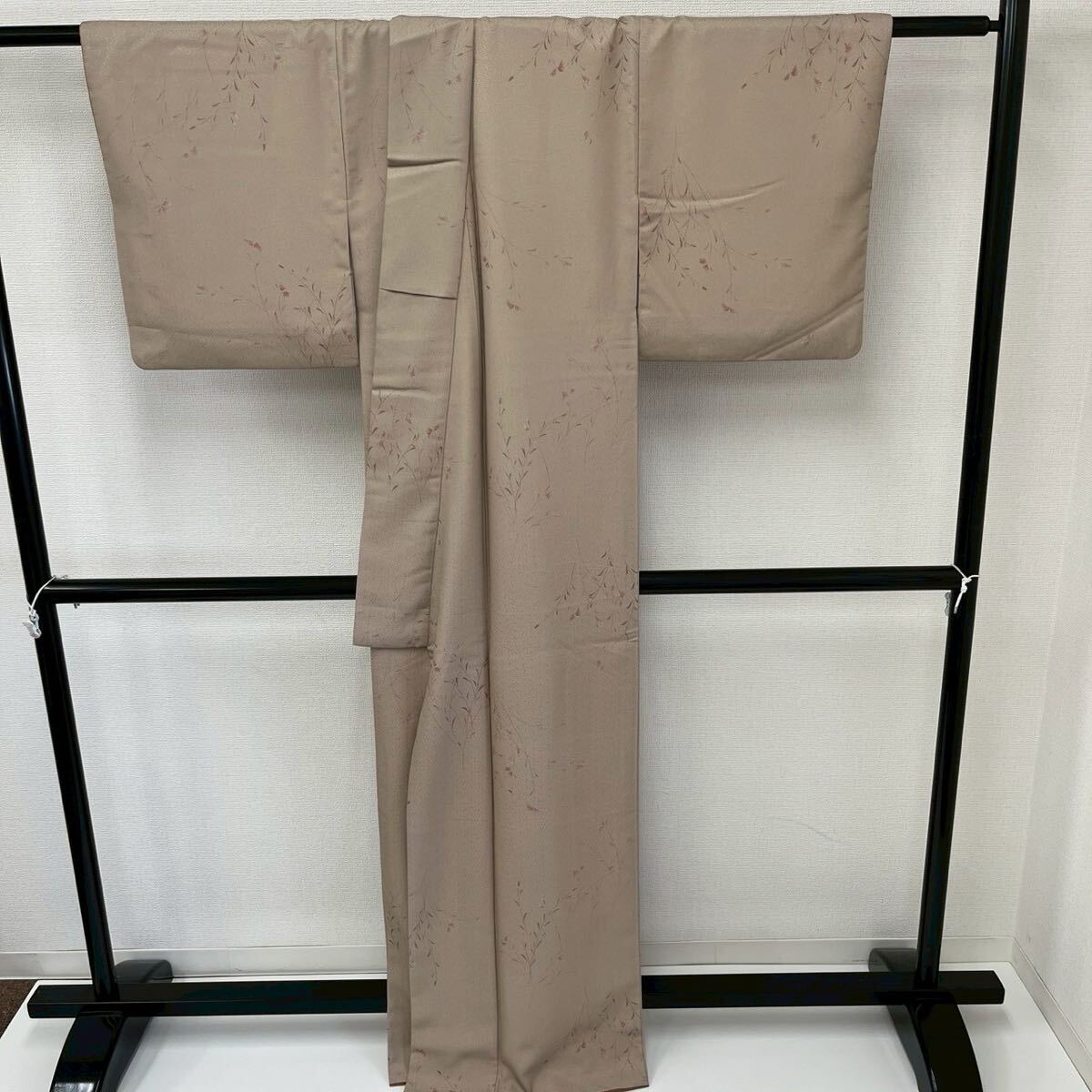 【蒼】小紋 ちりめん 上品な花模様の染め 紗綾形地紋 着物 正絹 Q-027