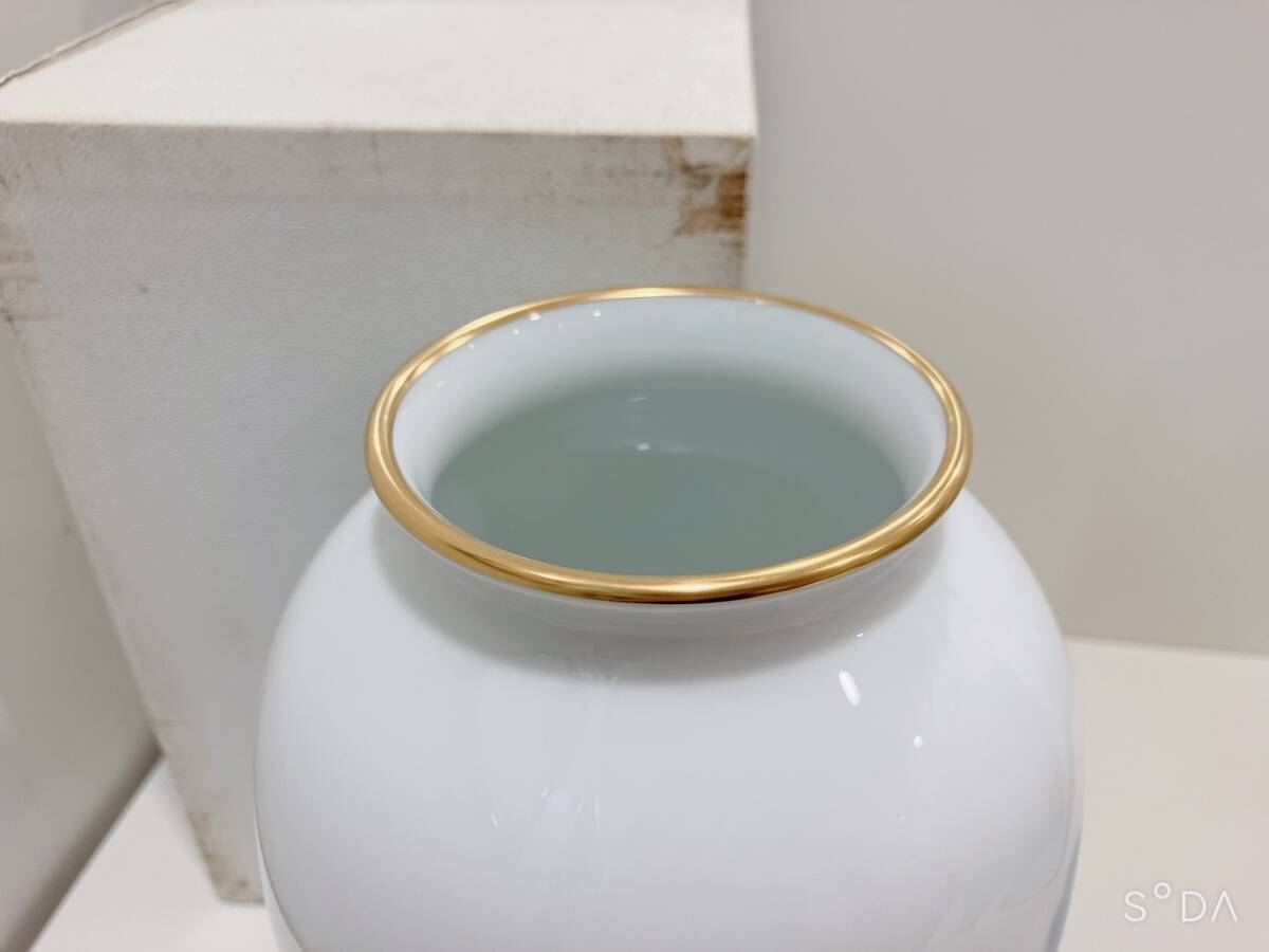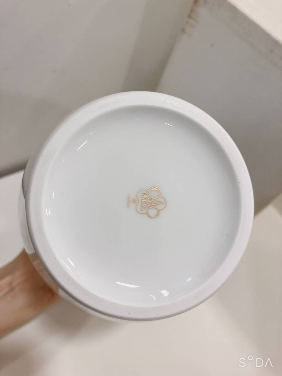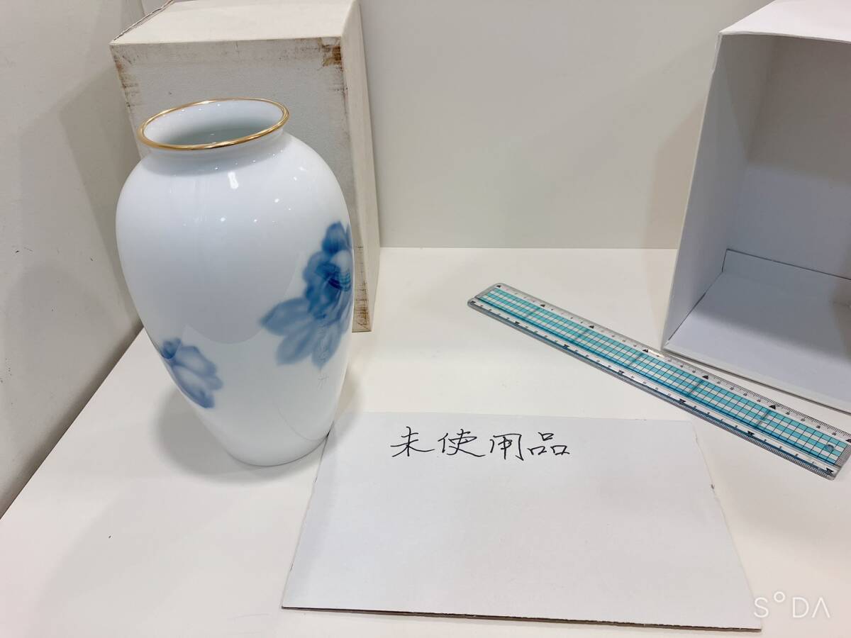 ◆【未使用】大倉 青 薔薇 バラ 花柄 白磁  花瓶 23㎝