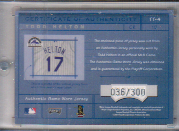 Todd Helton トッド・ヘルトン ロゴパッチ Donruss playoff Absolute Memorabilia Tools Of The Trade 2001