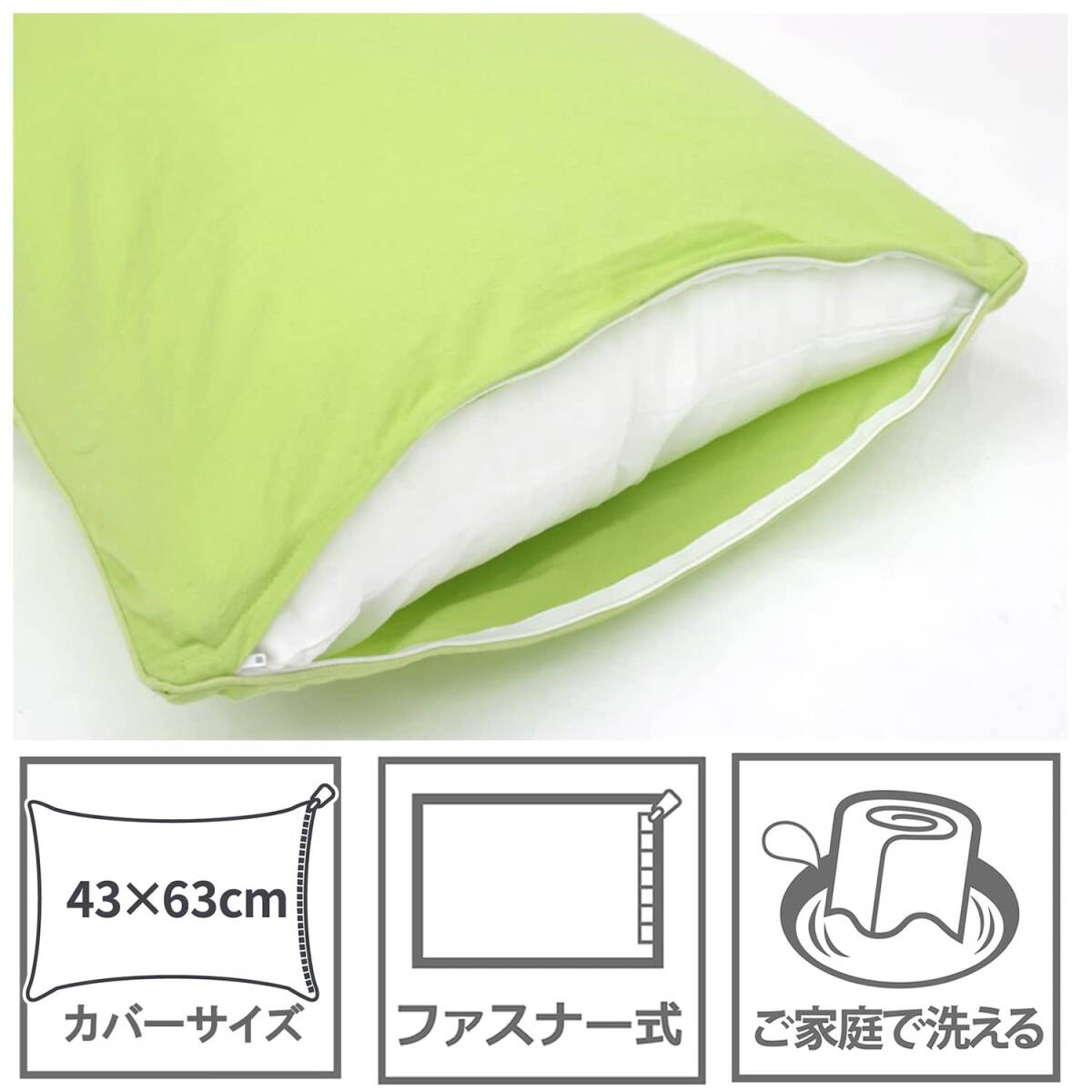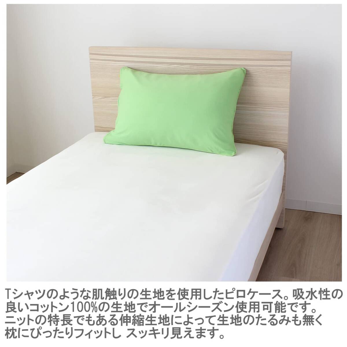 メリーナイト 枕カバー 無地カラー グリーン 約43×63cm ファスナー式 まくらが入れやすい 綿100% ニット素材 ピタッと装着 洗える