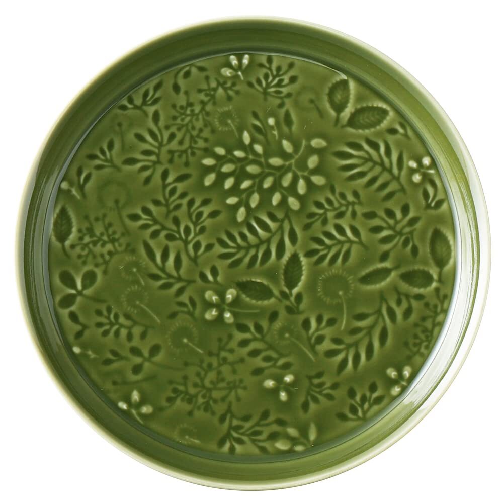 NARUMI(ナルミ) プレート 皿 アンナ・エミリア 19cm フォレストグリーン 花柄 かわいい レリーフ 平皿 電子レンジ オーブン 食洗