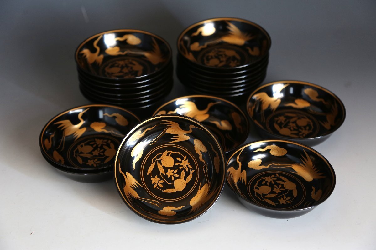 ★★★ 幕末期 木製 長寛蒔絵 木皿 20客 ★★★ 58