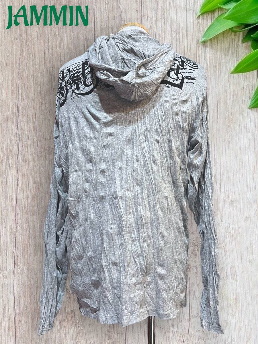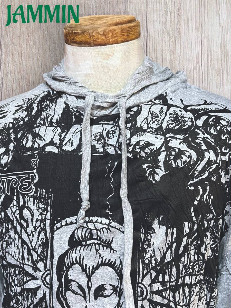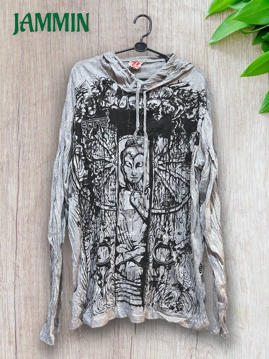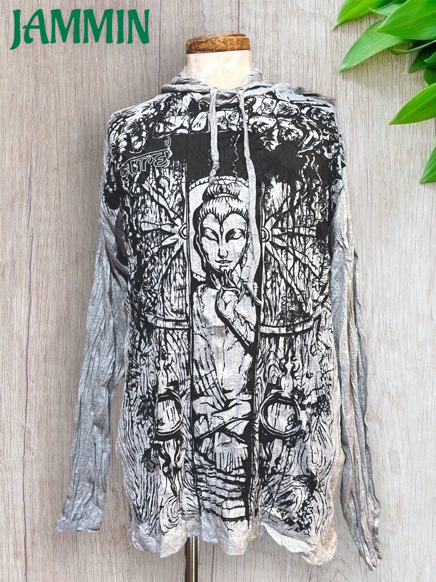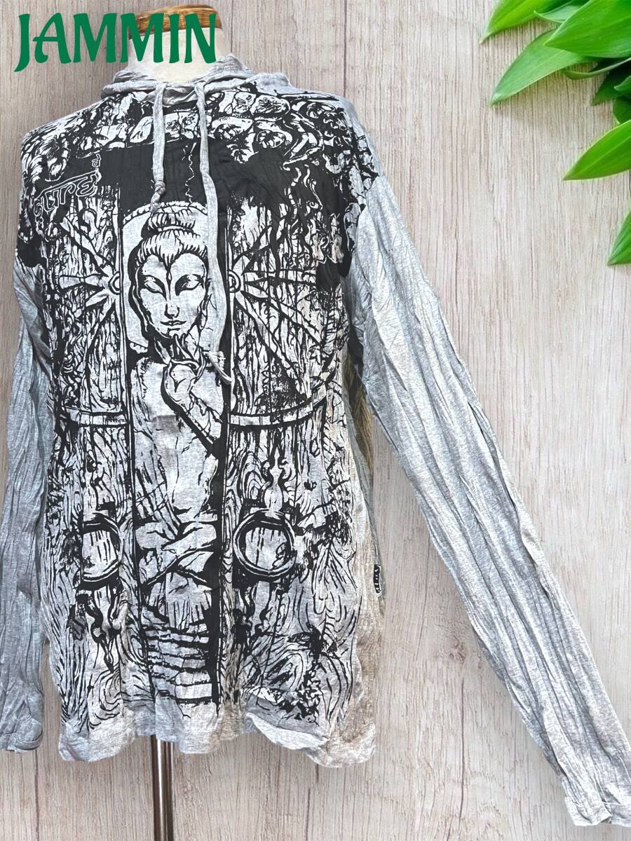 アジアン/エスニック/サイケ/ヒッピー/個性派/ロンT/長袖/Tシャツ/ロングスリーブTシャツ/フード付き/長袖/Lサイズ/