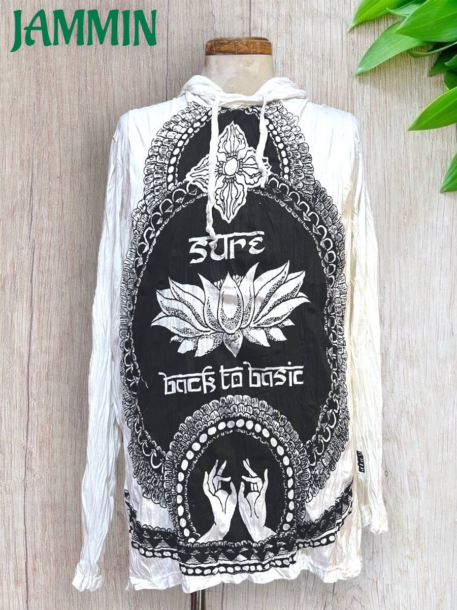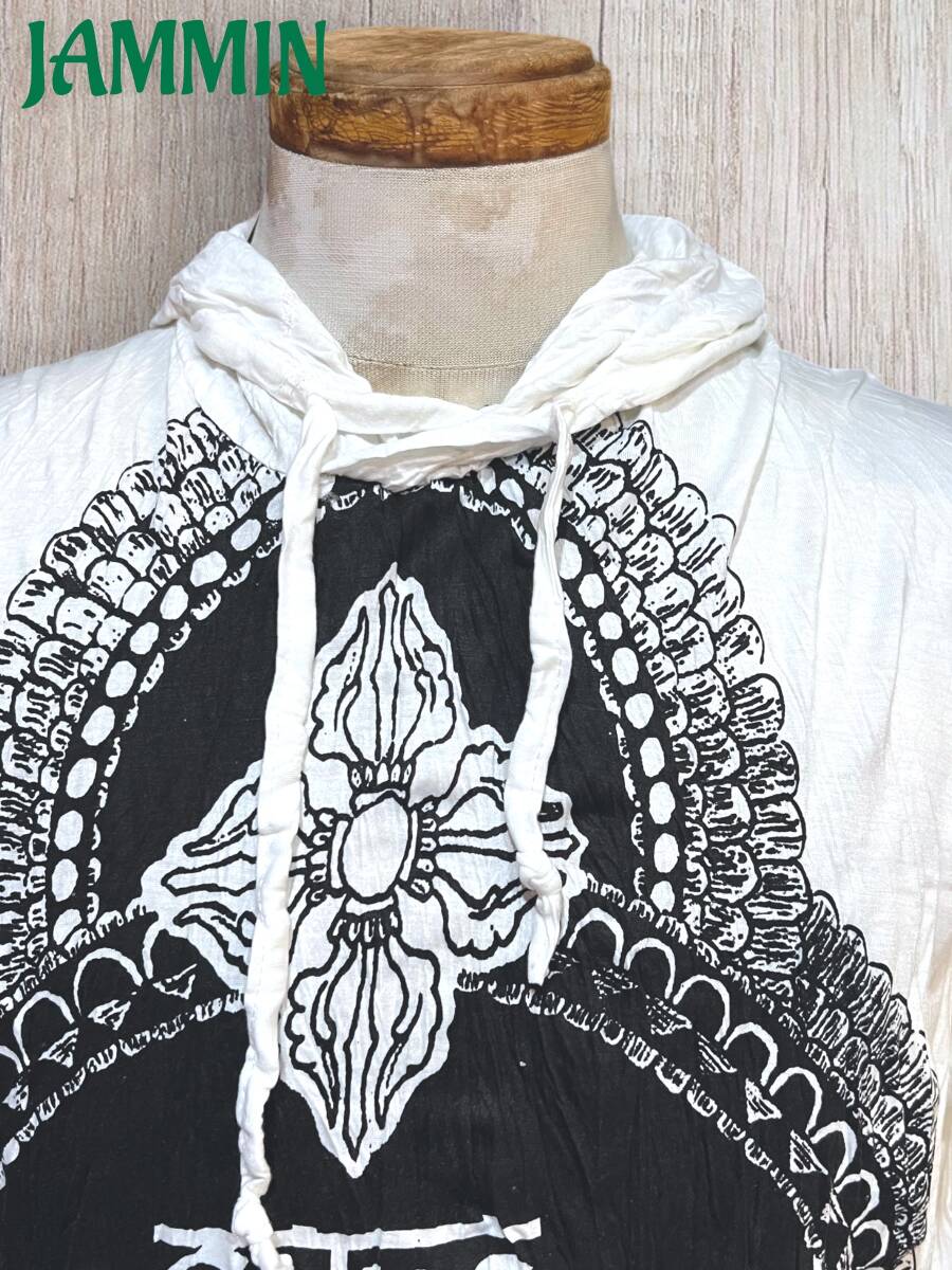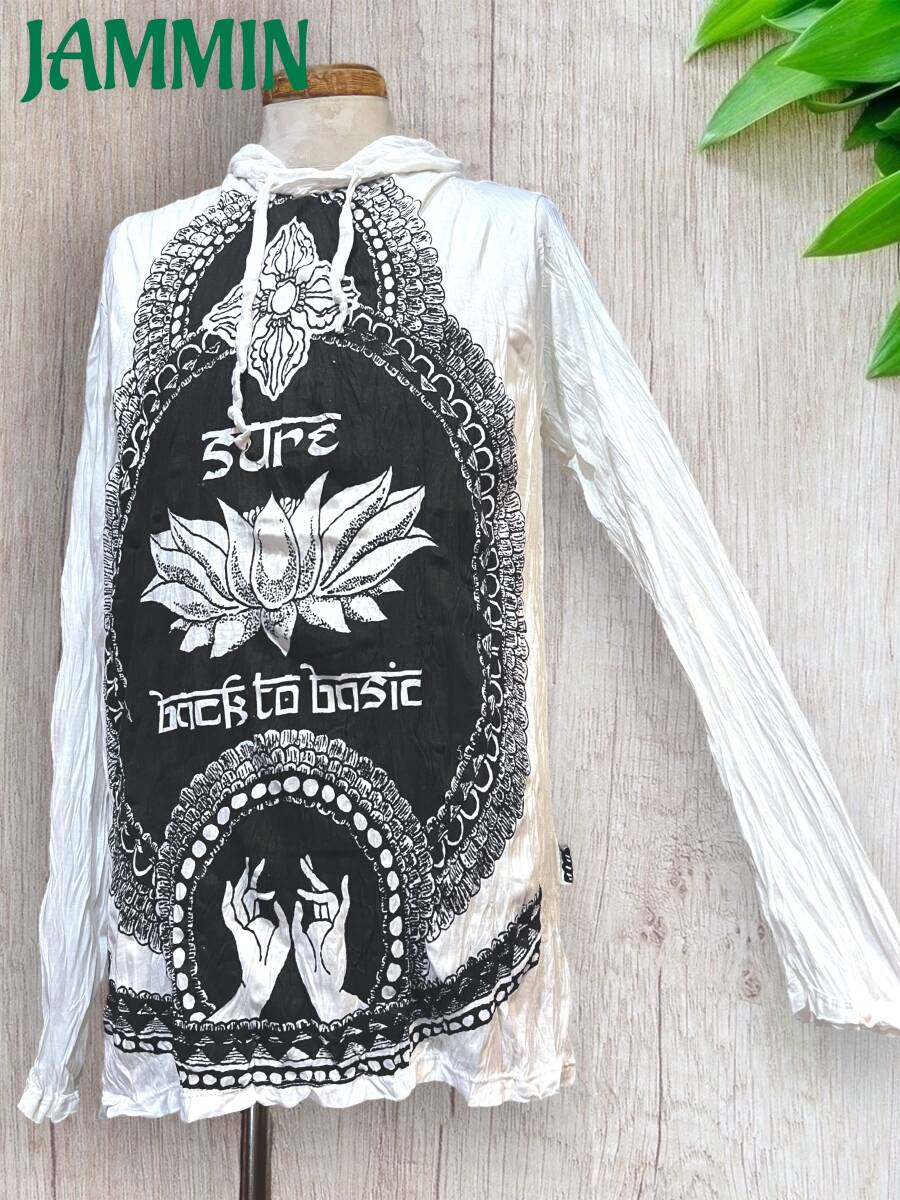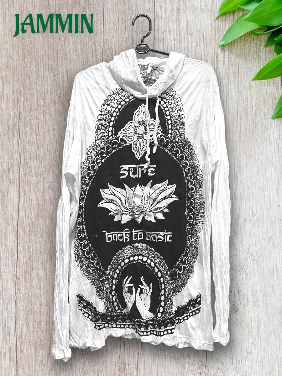 アジアン/エスニック/サイケ/ヒッピー/個性派/ロンT/長袖/Tシャツ/ロングスリーブTシャツ/フード付き/長袖/Lサイズ/