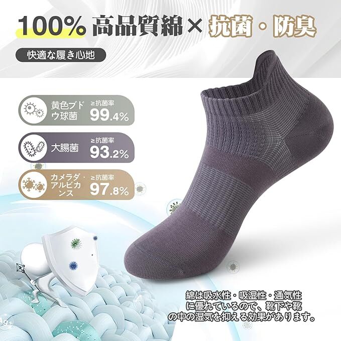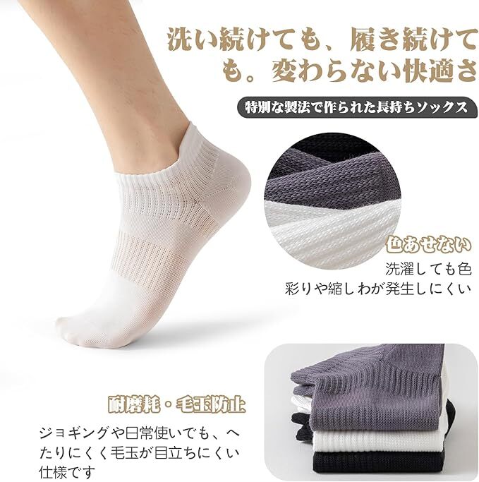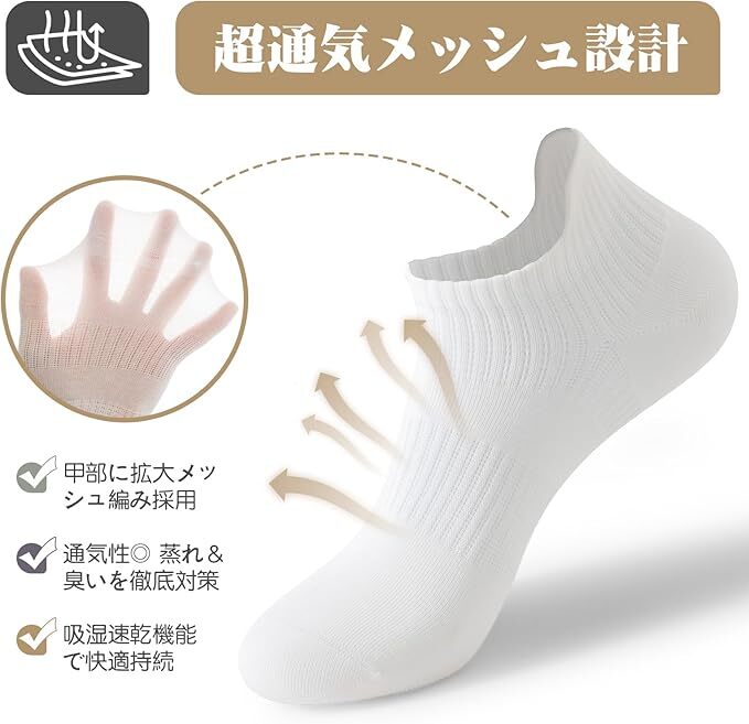 Amazon | [Ferriya] メンズスポーツソックス 通気性ボートソックス 抗菌防臭 吸汗速乾 滑り止め加工 シームレス ランニング トレーニング 通勤用アンクルソックス 26-28cm 5足組