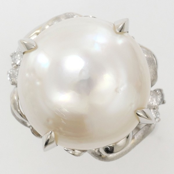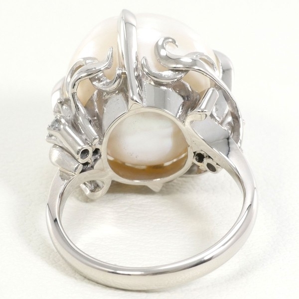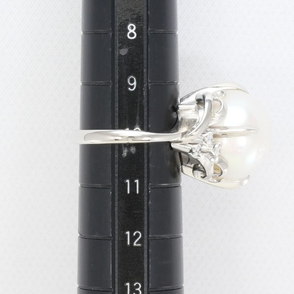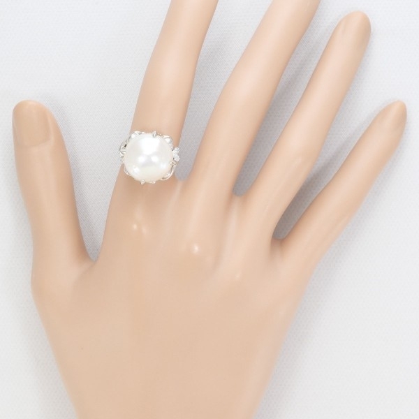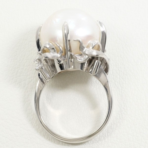 PT900 リング 指輪 10号 パール(真珠) 約14mm ダイヤ 総重量約12.0g 中古 美品 送料無料 | |