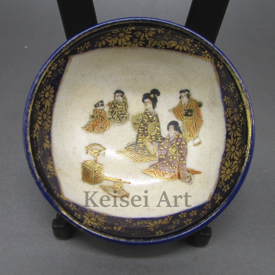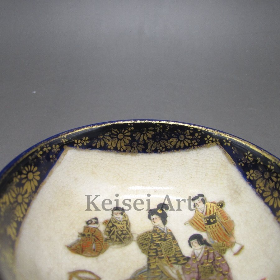 薩摩焼 瑠璃地人物文鉢 光山 英国より里帰り