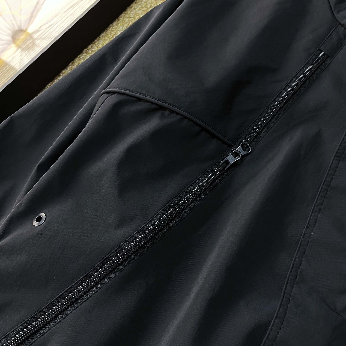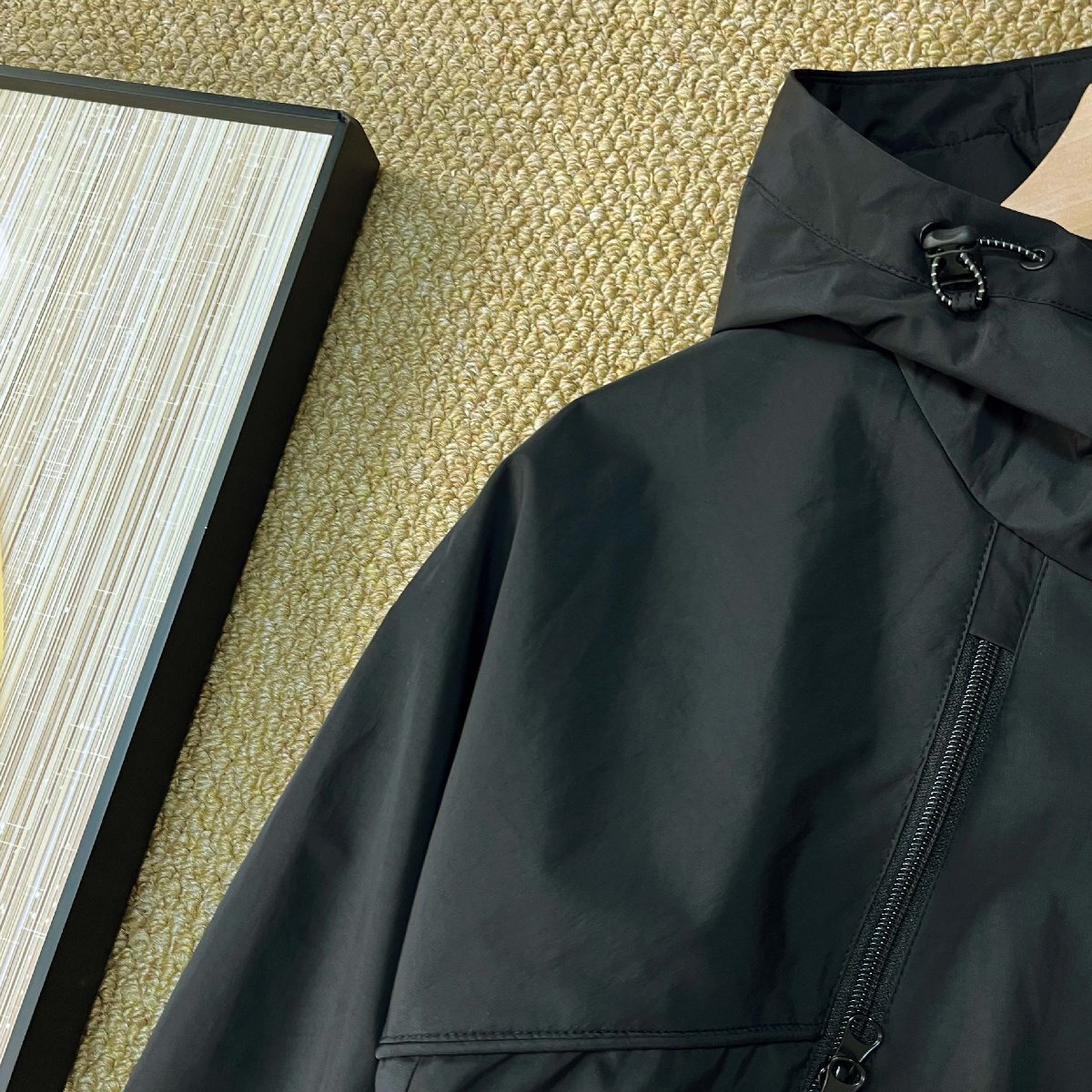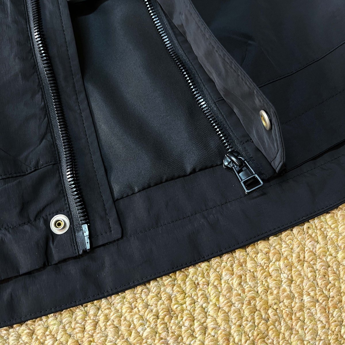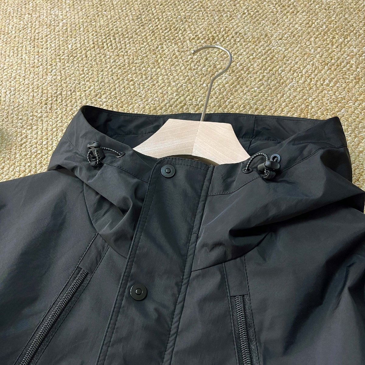 フードと裾には調節可能なドローストリングを備え、風の侵入をしっかりブロック。袖口はマジックテープ仕様で、フィット感を好みに合わせて微調整可能。両サイドには大容量のファスナー付きポケットを配置し、スマホや鍵、財布などの持ち運びにも便利。内ポケットも備えており、貴重品の収納にも最適です。
