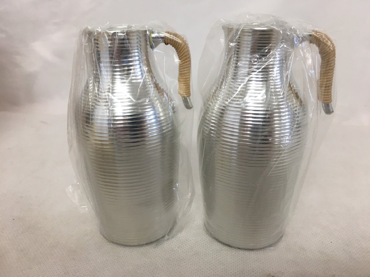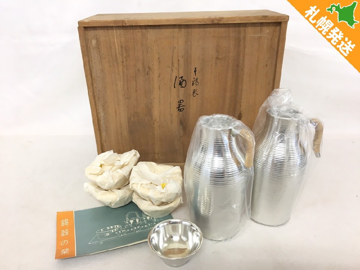 【R8-80313】未使用 錫製 本錫 酒器セット 徳利×2 お猪口×5 盃 金属工芸 共箱 当時物【千円市場】