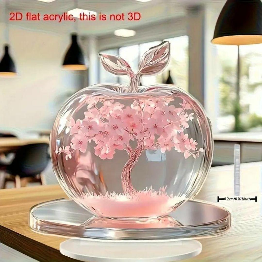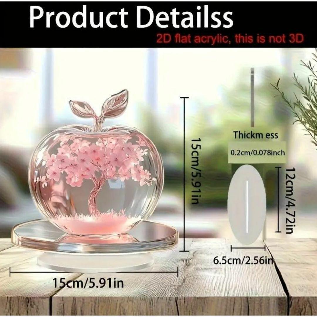キラキラ宝石デコレーションされたリンゴとピンクの花のアクリルスタンドです。