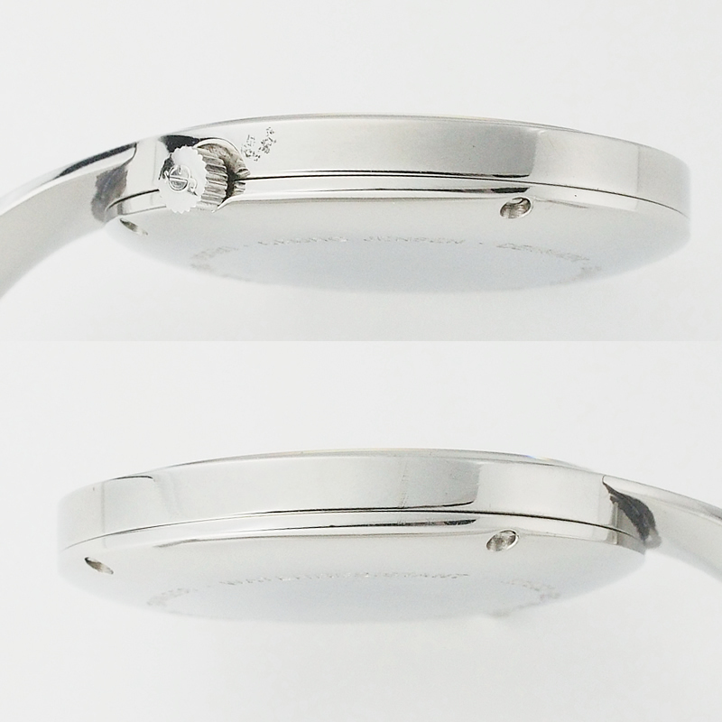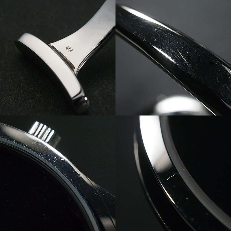 備考:ミラーダイヤルに滑らかな曲線がとても美しい「ヴィヴィアンナ」。一切の装飾をそぎ落とし、独創的な存在感を漂わせる斬新なバングルウォッチです。全体的にスレがございますが、通常使用でお気兼ねなくご使用いただけるお品となっております。