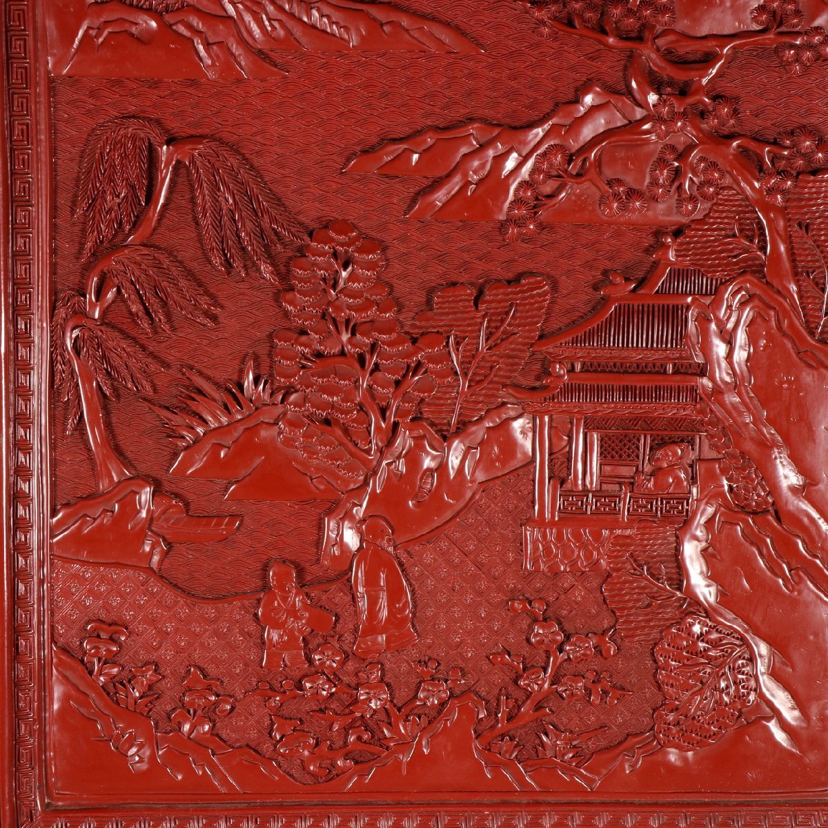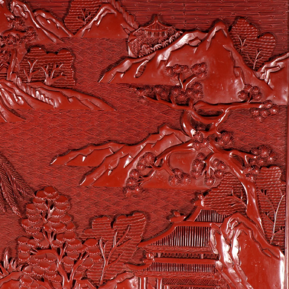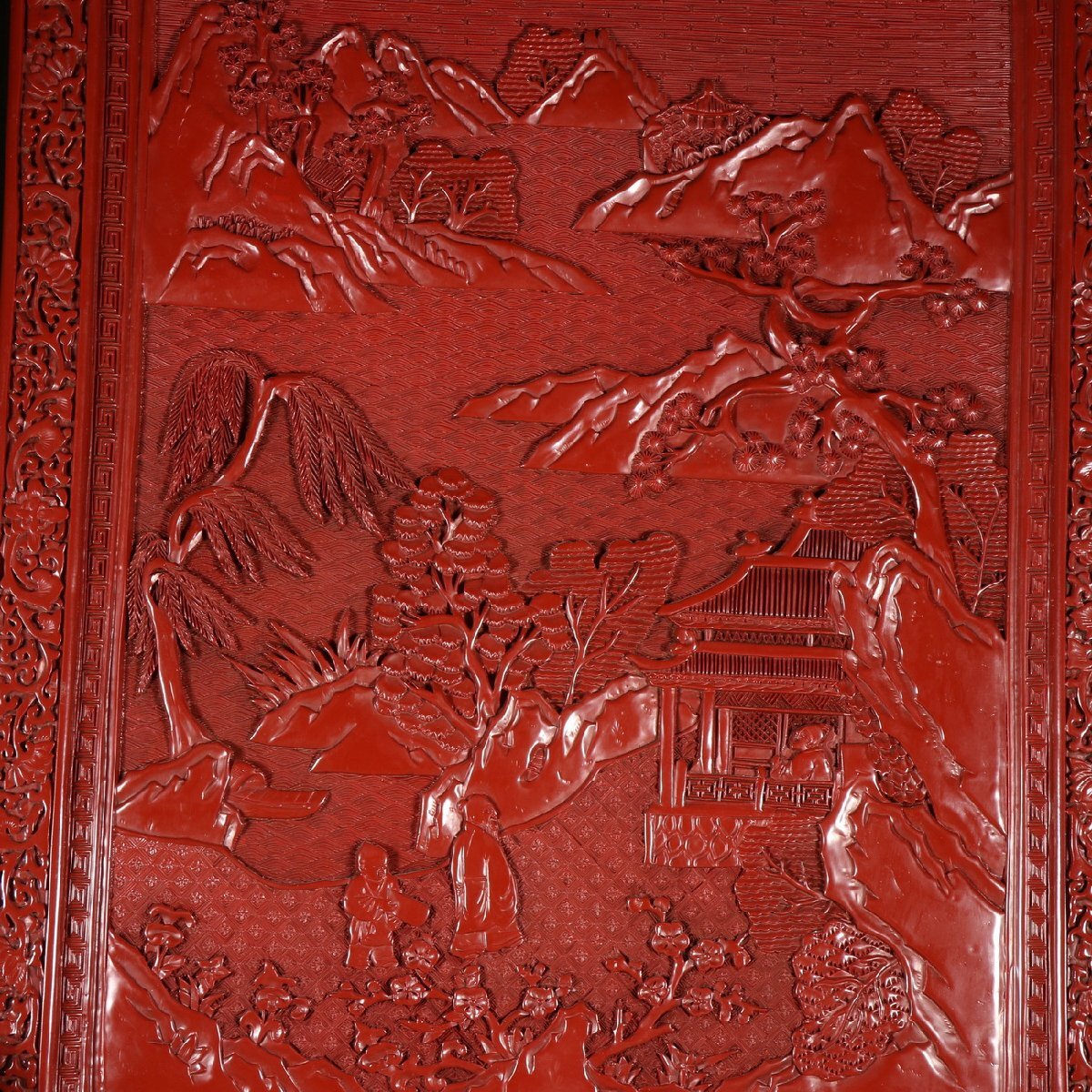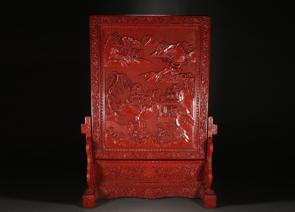 【清】某有名オークション購入 清時代 堆朱雕漆 山水人物紋巨大挿屏 古置物 古擺件 古美術 時代コレクション7L9-OG14
