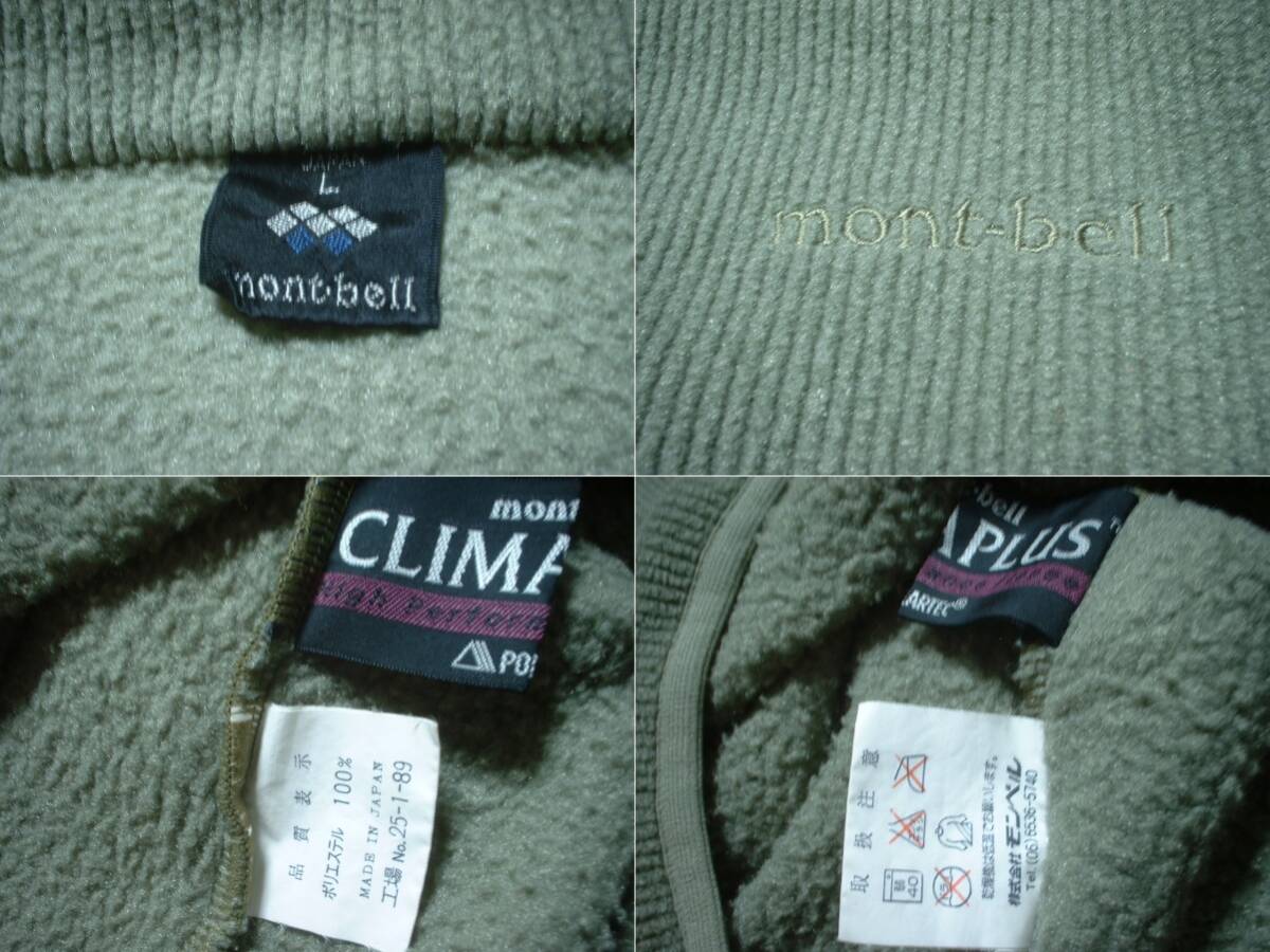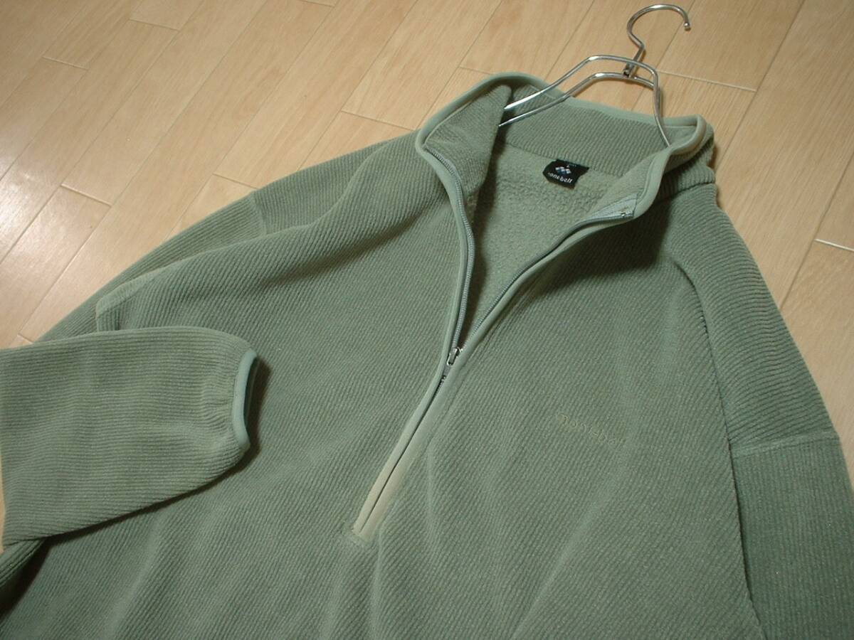 mont bellオリーブCLIMAPLUSハーフジップフリースジャケット美品Lカーキグリーン正規モンベルCLIMAPLUSプルオーバーポーラーテックPOLARTEC