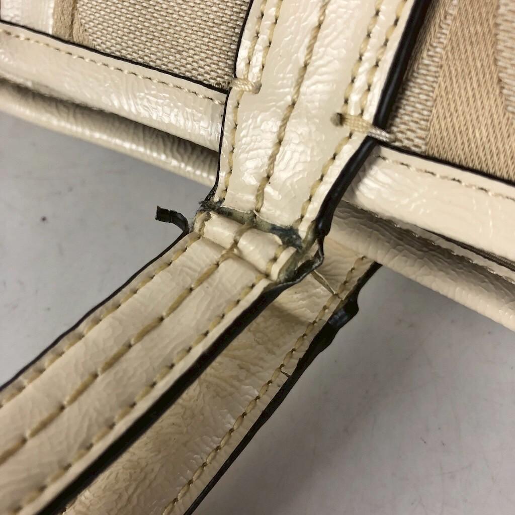 【取っ手、ショルダーストラップ】汚れ、傷、痛み、使用感、劣化、ひび割れが御座います。長さ18cm