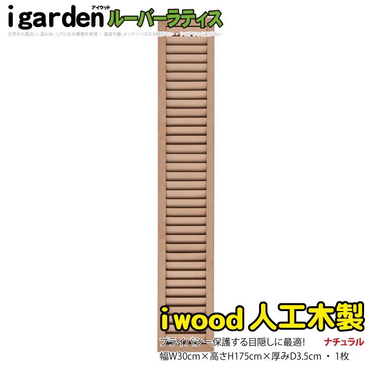 igarden 人工木 ルーバーラティス 1枚 H1750×W300 ナチュラル 樹脂製 目隠し 日よけ 雨よけ 換気 仕切り 採光 境界 フェンス 10051