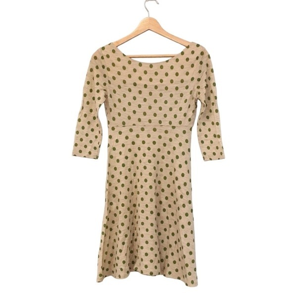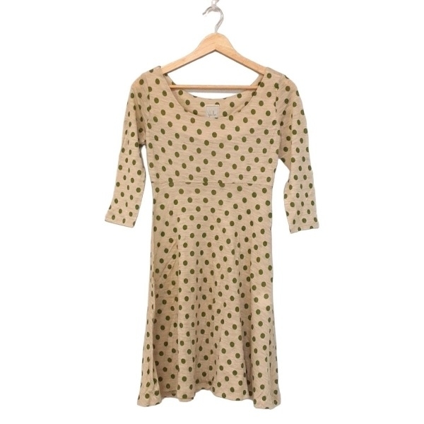 シビラ Sybilla サイズM - ベージュ×カーキ レディース 七分袖/ひざ丈/ドット柄/シースルー 美品 ワンピース