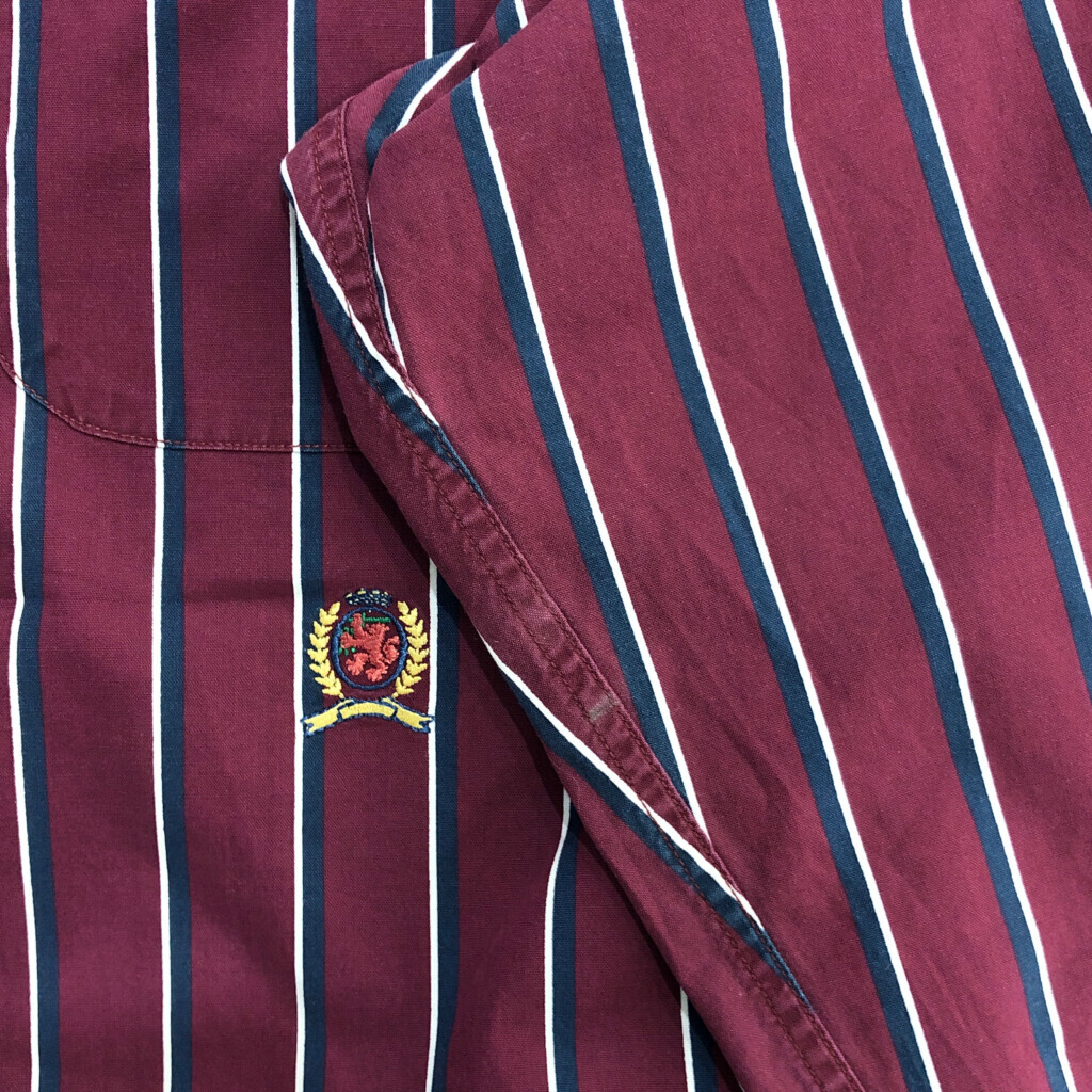 【商品管理番号】 V1598 【ブランド】 TOMMY HILFIGER/トミーヒルフィガー 【サイズ】 L 【実寸サイズ】 肩幅:約56cm 着丈:約83cm 身幅:約69cm 袖丈:約62cm 【主な素材】 表地 : コットン 【色】 パープル 【仕様】 90年代 ボタンダウン 【状態】 汚れ:袖 |