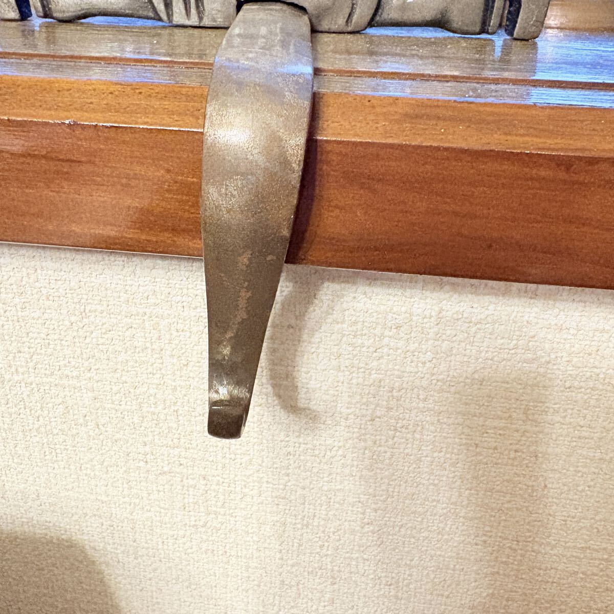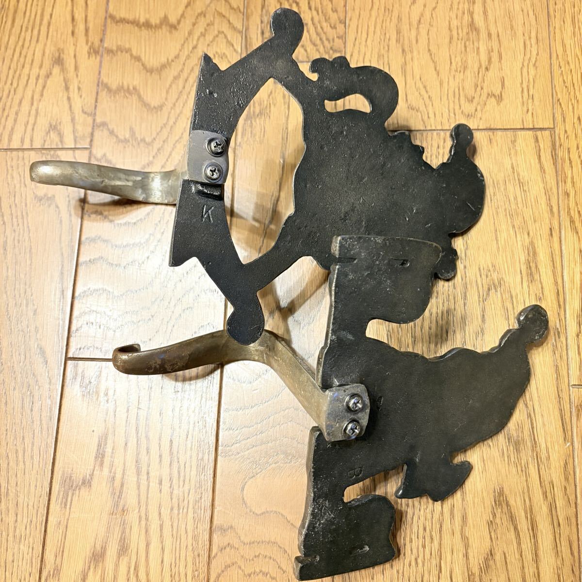 鋳物(鉄)でできているので、かなりの重量がありますので、(約0.9kg)棚に置いて軽い飾り物(オーナメント・クリスマスストッキング・リースなど)を吊るすことができます。