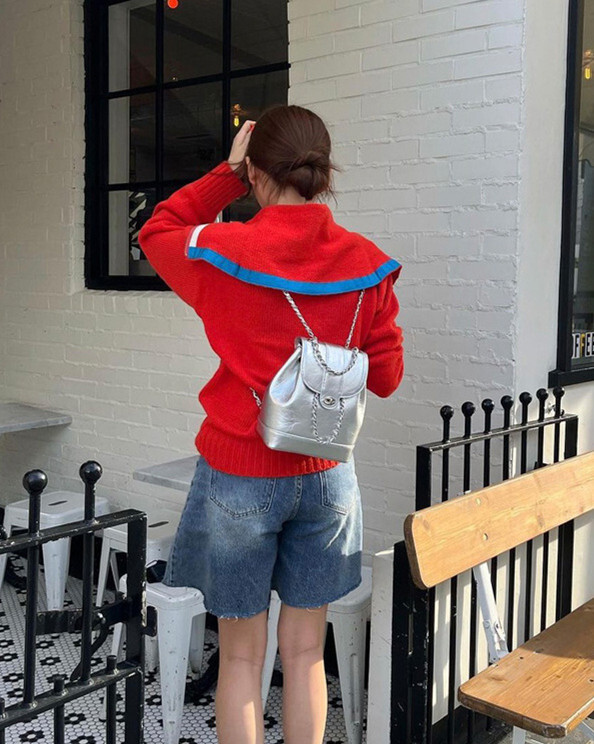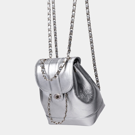韓国 おしゃれ ミニサイズ 巾着バッグ オフィスカジュアル リュック レディース チェーンバッグ 肩掛け 通勤 通学 シルバー