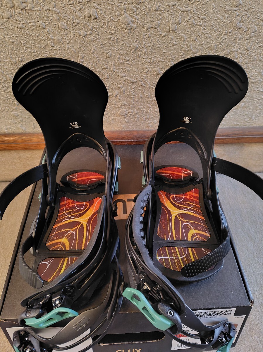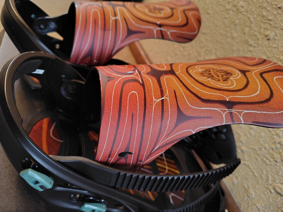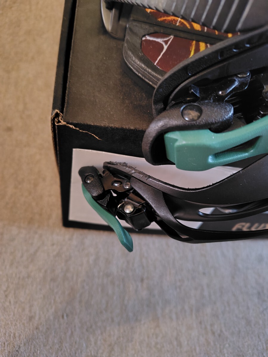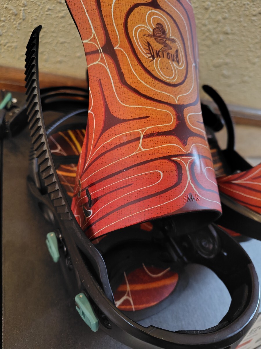 2024.11購入。北海道限定モデル。Sサイズ。6-7日の使用だと思います。ハイバックに擦れ、右足トゥストラップに少し傷ありますがそれ以外は特にダメージなく問題なく使えます。ソフトフレックスのバインディングですがFFほど柔らかくはないのでコンディション選ばず使えます。パウダーはもちろん壁への当て込みやレイバッグなど足首が自由に動くのでスタイル出しやすいと思います。