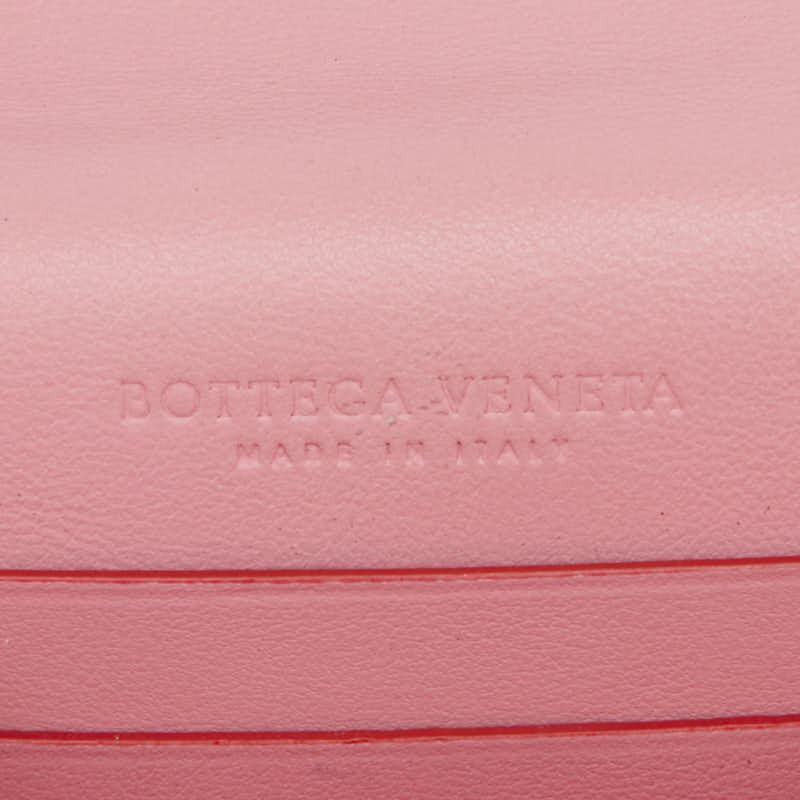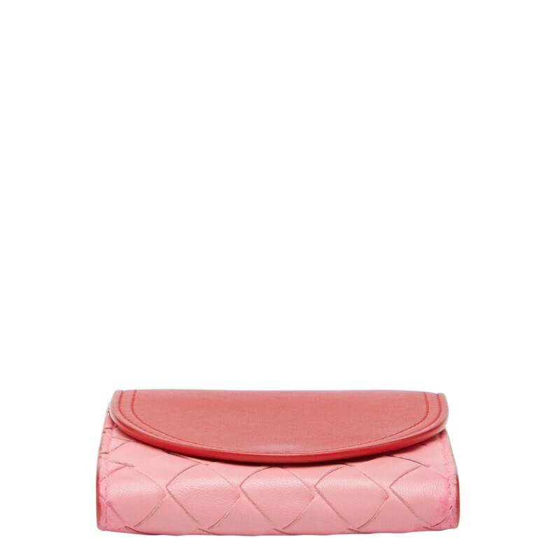 ボッテガヴェネタ イントレチャート 二つ折り財布 577841 レッド ピンク レザー レディース BOTTEGAVENETA 【中古】