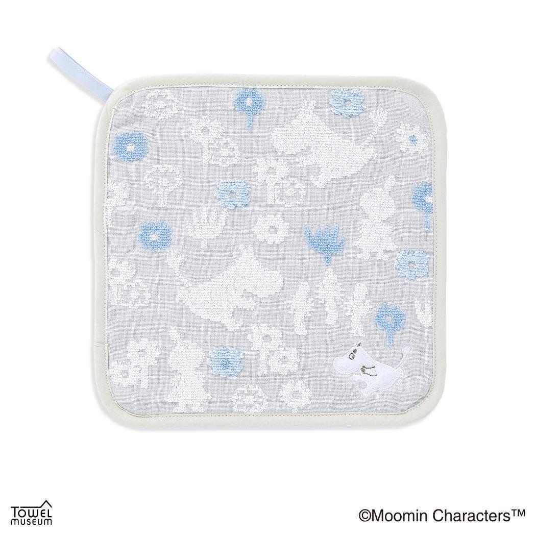 ムーミン ループタオル フルフィーコットンガーゼパイルループ付タオルハンカチ フラワーピクニック ブルー 北欧 タオル美術館 プレ