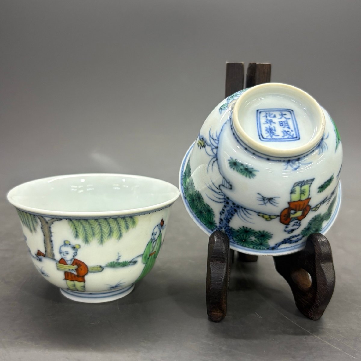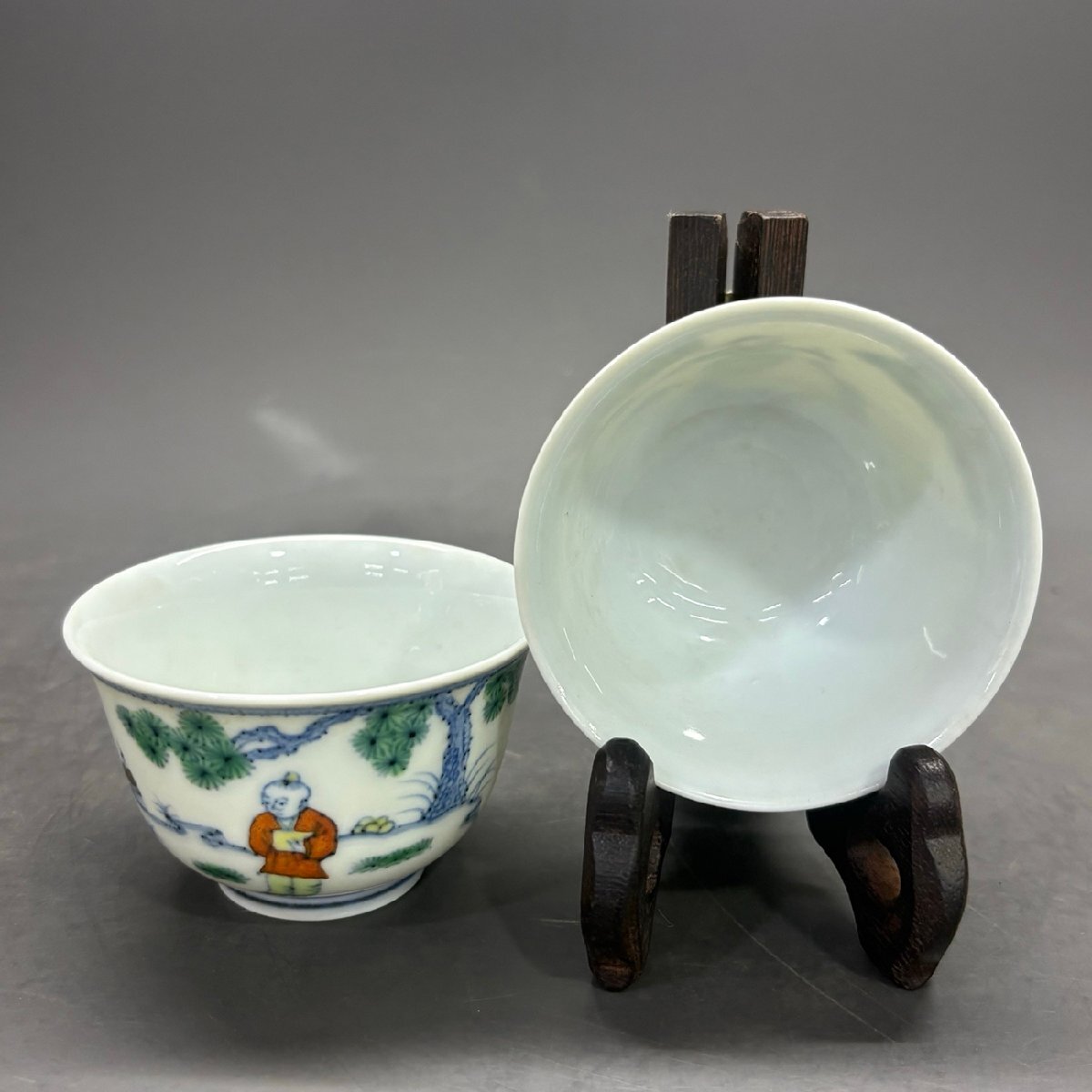 【安】明時代 大明成化年製 斗彩人物図杯一対 共箱 唐瓷 染付 古陶瓷 中国古美術 古董品 263 サイズ(約寸) |
