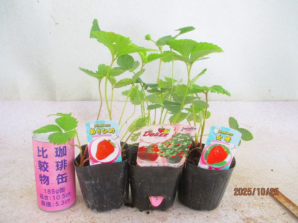 [緑の市場]イチゴ 3点組(102305)全高:23㎝*同梱包対応「まとめて取引」厳守*80サイズ送料明記 同梱包ご希望は「まとめて取引」でお手続きして下さい。 *同梱包は[緑の市場]のタイトルでの出品商品に限ります。類似画像で他IDの出品にご注意下さい。* 単品(セット品は1組)発送ご希望の際は「まとめて取引」の手続きをしないでください。入札前に必ず下記の「発送方法」に記載の送料を確認してください。 ヤフオクの取引においてメッセージは特に必要ありません。挨拶などを省略できる取引システムですし取引ナビの通知で進行状況が判るので都度の連絡(送金や受け取りのメッセージ)は不要です。配送日時指定や連絡事項のみお知らせください。双方合理的に進めましょう。また、お急ぎの方は入札をご遠慮ください。業務時間内での対応になります(土日祝休業)。 寸法は鉢を含む全高です。(樹高ではありません。) 一緒に撮影しているスケールまたは比較物をご参照ください。 飲料缶は高さ約10㎝、直径約5㎝です。 500mlペットボトルは高さ約21㎝です。 ■画像の様子から経時変化しますので撮影日(画像記載)からの変化はご了承下さい。 *花物・実物は特にご注意下さい。 画像(撮影時)では開花品でも、お届け時は花終わりを想定して下さい。 ◎落札が無い場合は、自動再出品が継続されます。 撮影から2か月経過した場合、どんどん開始価格が下がりますが、商品の劣化も進みますので、 撮影日からの期間経過品はある程度の劣化を想定で入札にご参加下さい。 商品により90日間程度(物によりそれ以上)同じ画像を使用しますので、必ず撮影日をご確認下さい。 |