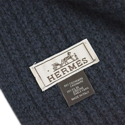エルメス マフラー HERMES H393665T11 ECHARPE 26×210 JEUX D HIVER カシミア カシミヤ ニット 無地 ネイビー 紺 レディース メンズ