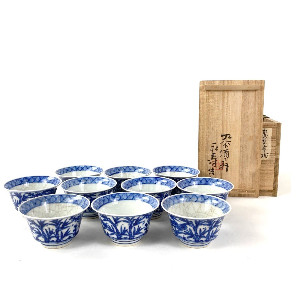 | 商品名 | 九谷 矢口永寿 清々軒 青華松竹茶碗揃 10客 共箱 煎茶碗 煎茶器 茶道具 4219544 |