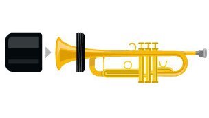 1.お持ちのトランペットと製品「ホームミュート」をご用意ください。※トランペット以外の形状の場合、装着ができない場合がございます。ご購入前に必ずご確認ください。