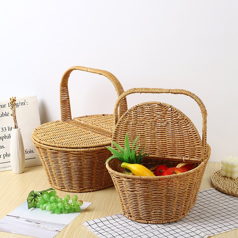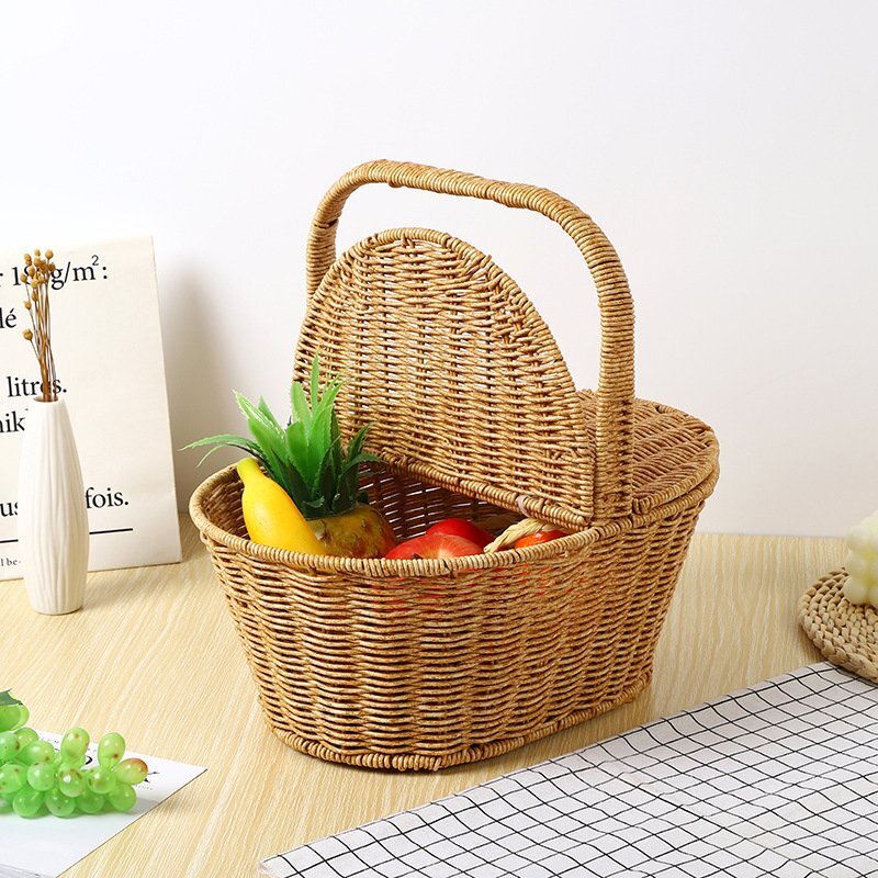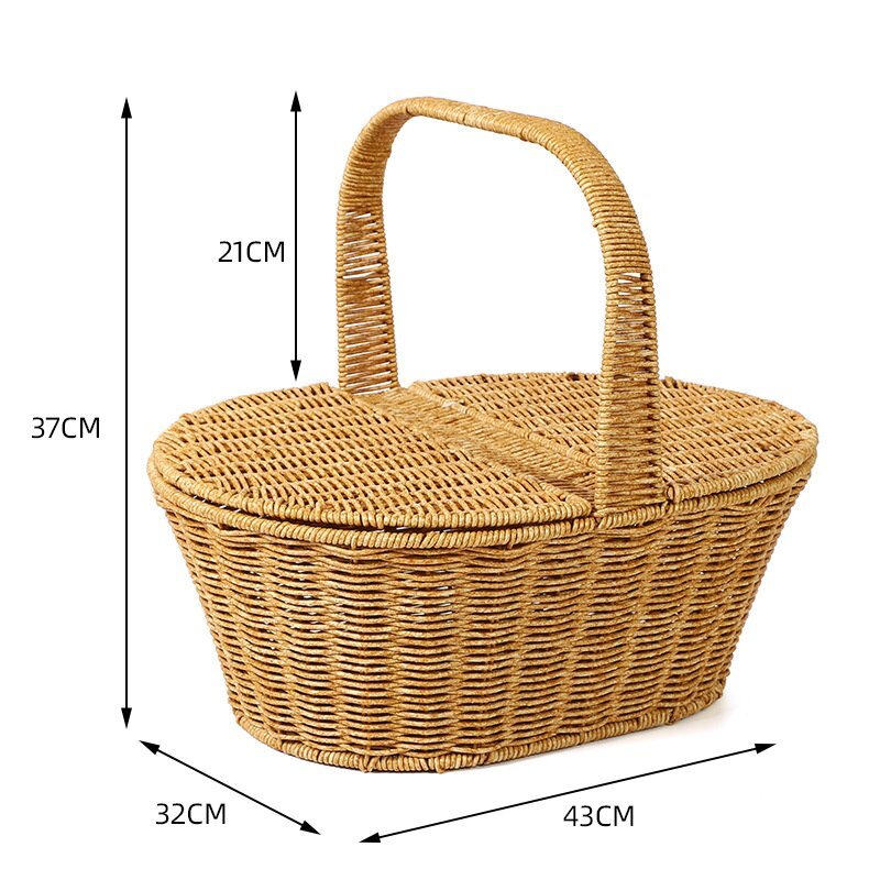 ピクニックバスケット 籐かご 籐かごバスケット ハンドルふた付き 運動会 野菜 果物入り アウトドア 43*32*37 465