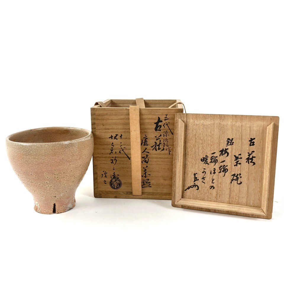 | 商品名 | 時代古萩 五代 坂倉新兵衛 (源次郎光長)作 十二代新兵衛 極め箱 即中斎書付 古萩唐人筒茶碗 茶道具 古美術 4225187 |