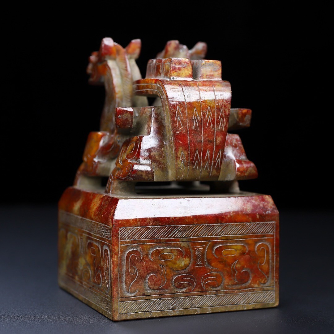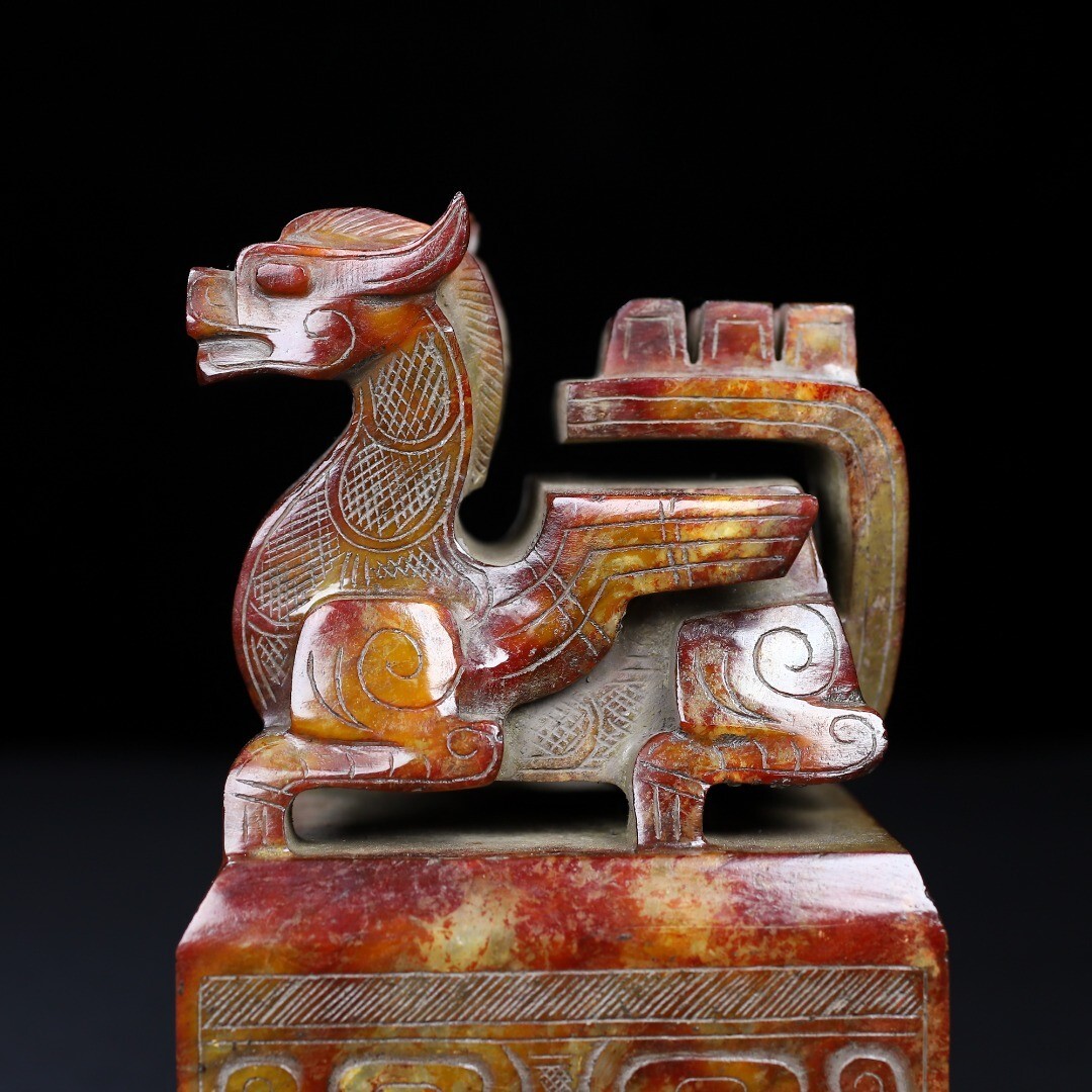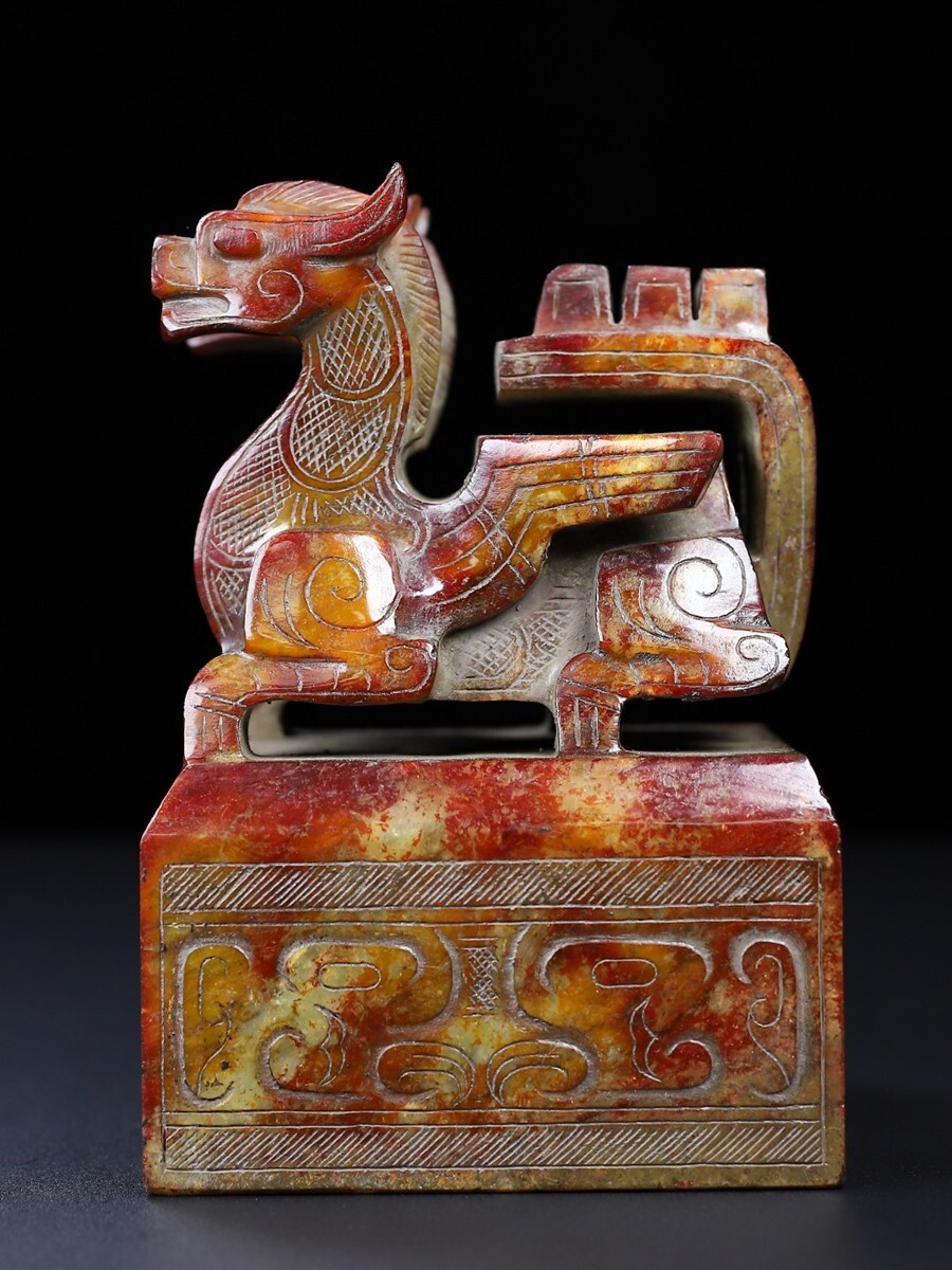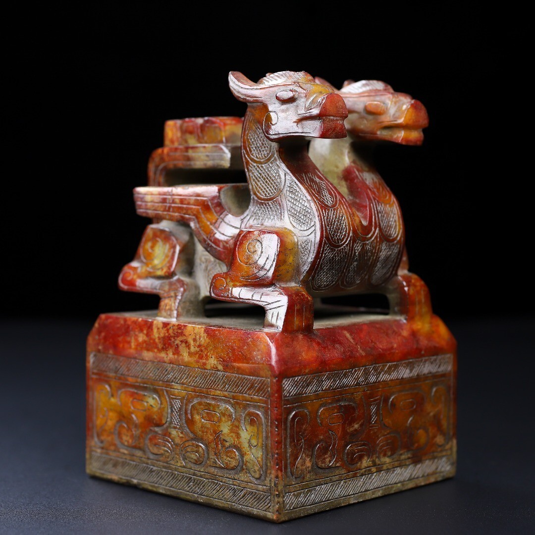 「時代物 和田玉 高古玉彫り 双頭古獣印章」極細工 賞物 中国古美術 旧蔵出