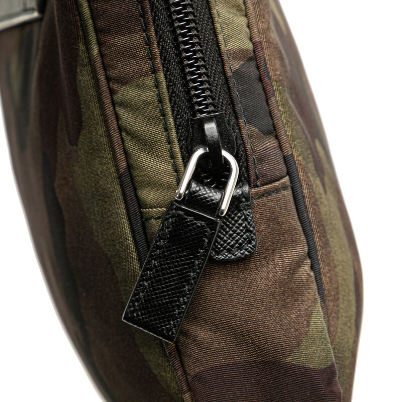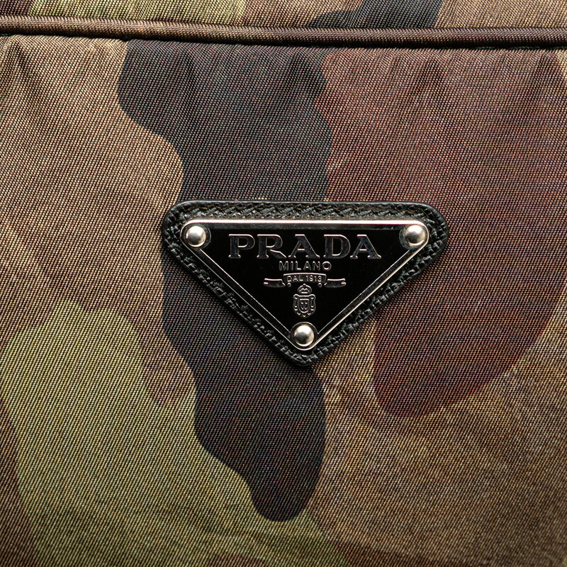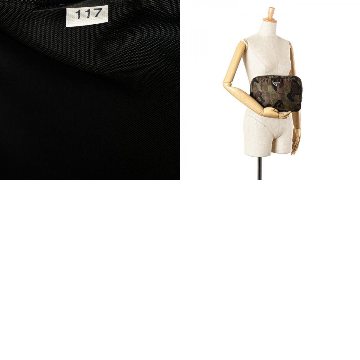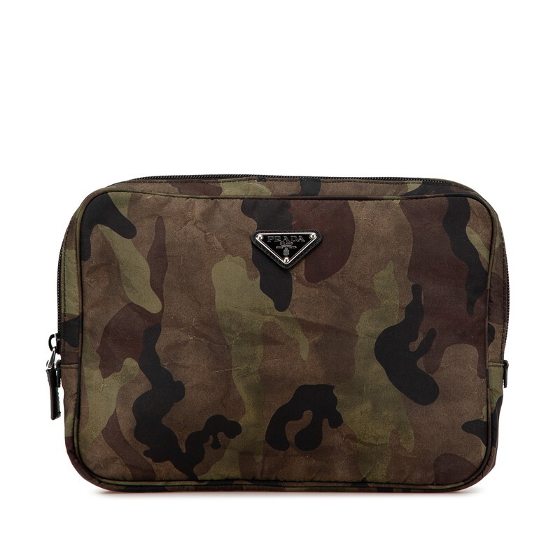 プラダ カモフラージュ 三角ロゴプレート クラッチバッグ セカンドバッグ グリーン カーキ ナイロン レザー レディース PRADA 【中古】