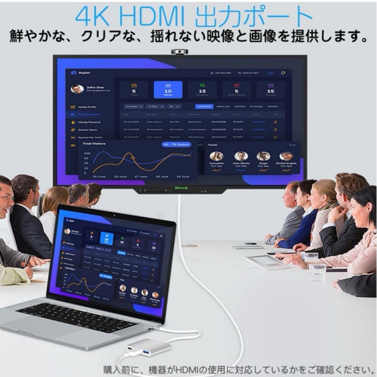 3-in-1アダプタ:ノートPCのUSB-Cポートから、HDMI接続、PDポート急速充電、高速データ転送が可能です。