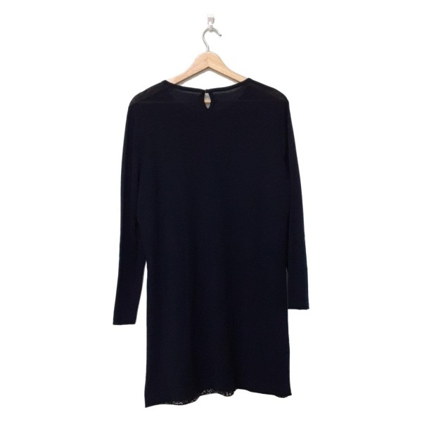 レリアン Leilian サイズ13+ S - ダークネイビー×グレーベージュ レディース クルーネック/長袖/ひざ丈/ニット 美品 ワンピース