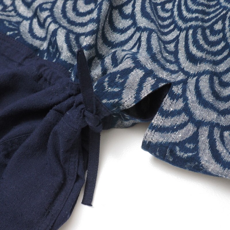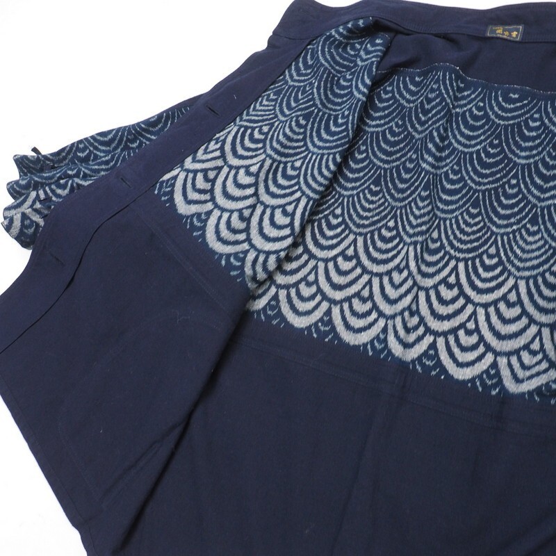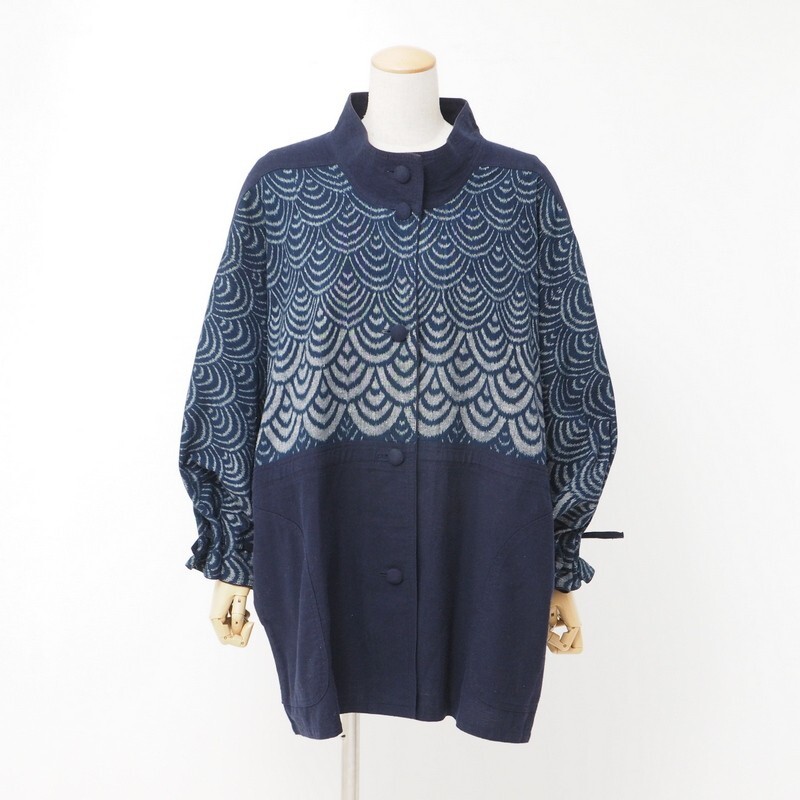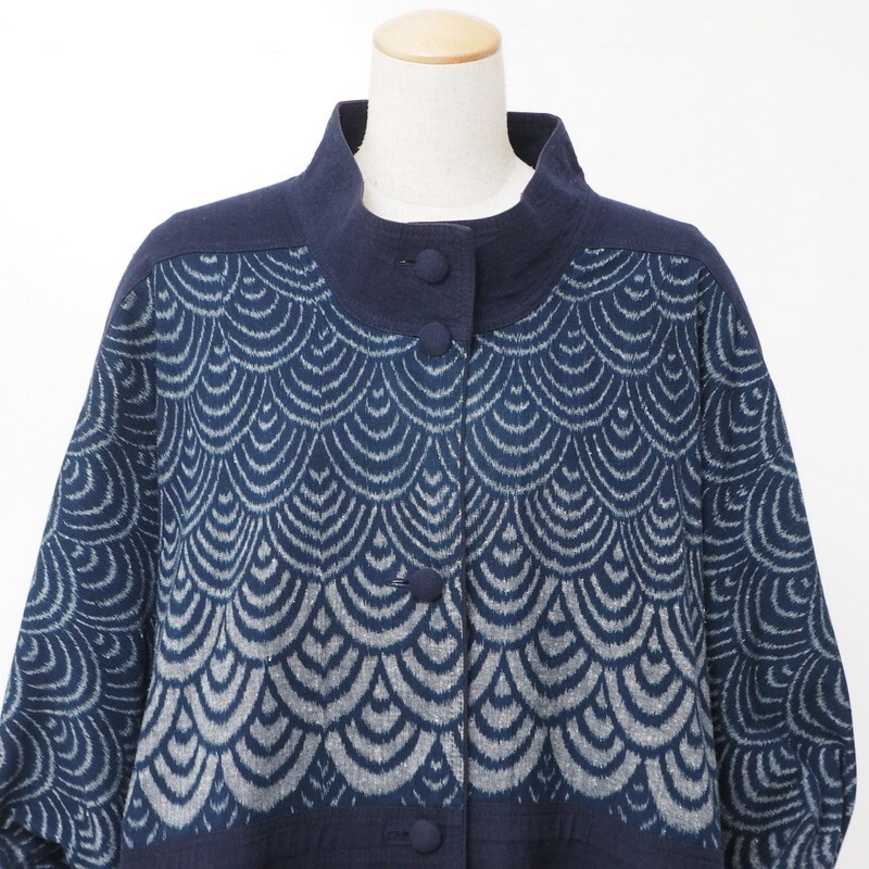 | TJ5617★而青堂 NISHOUDO ニショウドウ 久留米絣/くるめがすり 青海波 和柄 ジャケット ミドル丈 コート レディース M~相当 日本製 | |||