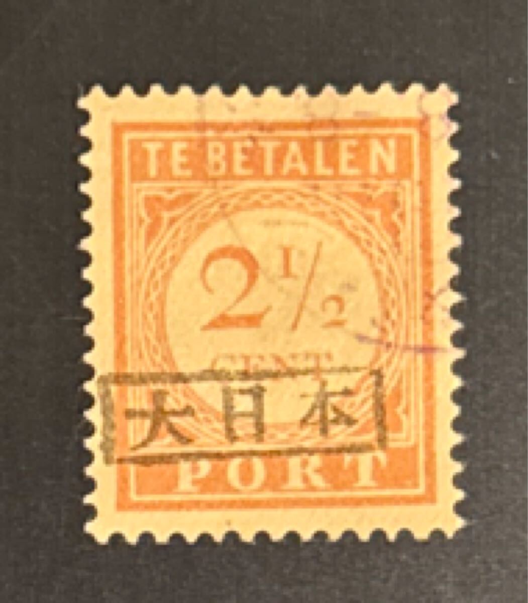 南方占領地 スマトラ 東海岸州 大日本枠付黒加刷 不足料切手 [本国印刷] 2 1/2 cent 使用済