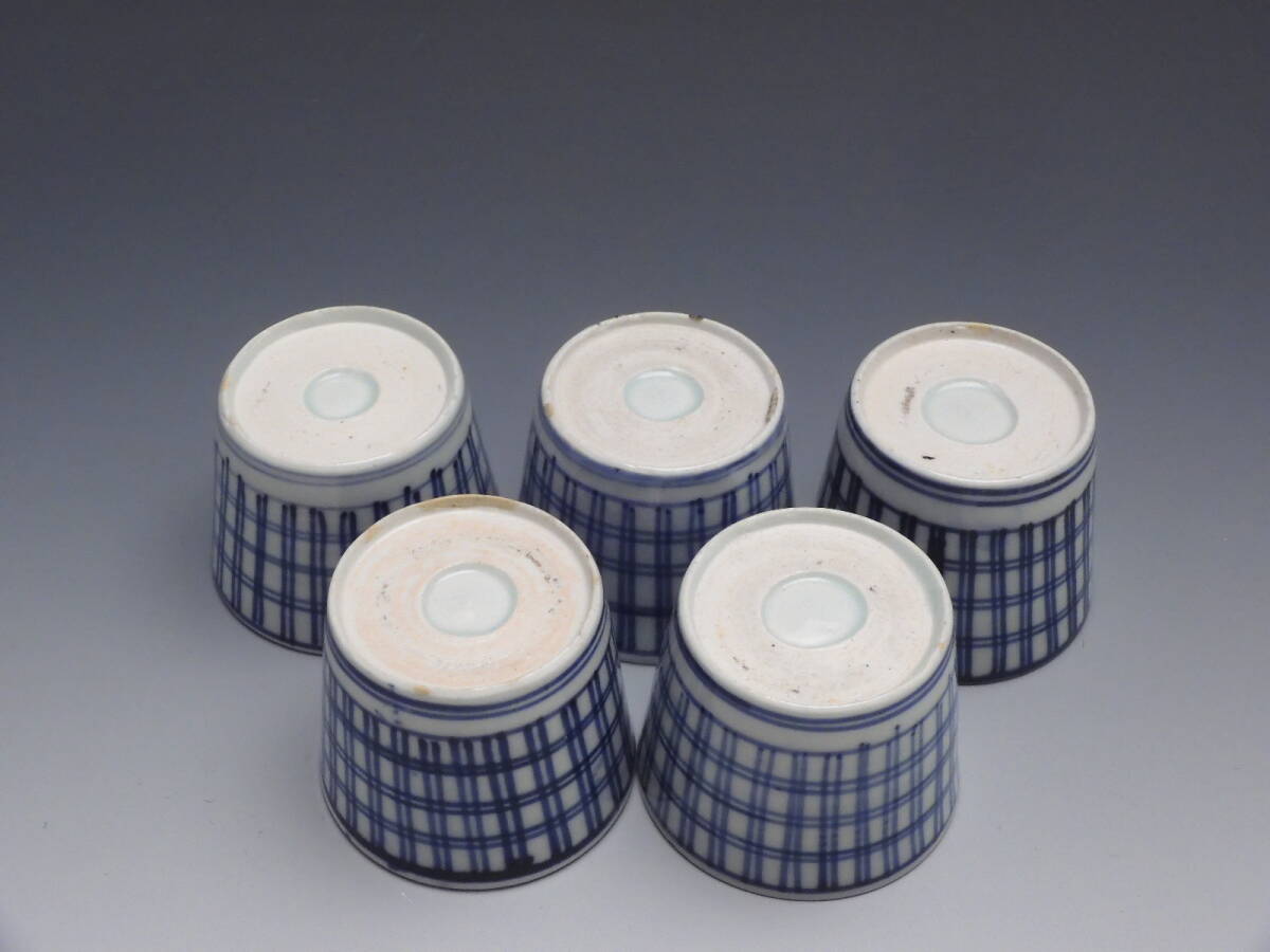 | ◇桔◇古伊万里 染付 格子文 蕎麦猪口 5客 江戸期 B3◇ |