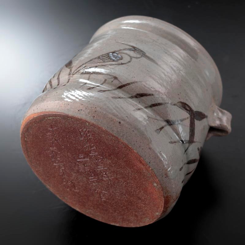 【十三代中里太郎右衛門】 代々唐津藩の御用窯を任されていた中里家、十二代太郎右衛門の長男として生まれ家業を継ぐ。 作品は、古唐津焼の復元をめざし父や弟の中里重利と共に、ろくろをゆっくり回しながら中に木を当て、 外側から叩(たた)き板で叩き締めるという叩きの技法を研究。 また色絵付けにも優れ、特に魚の絵を好み代表作に「叩き唐津三島掻落し辰砂魚文壷」がある。 また、作品に「た」の落款、押印が彫られているものが本人のオリジナル作品であり、 現在市場に多く出回っている「∴」印(3つの点が三角形を容っている印)は、中里太郎右衛門窯の登録商標のマークであり中里窯の商品と分類される。 2009年3月12日慢性骨髄性白血病の為逝去。 |