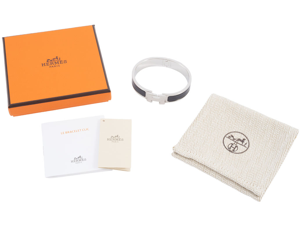 ■ エルメス エナメルブレスレット 《クリックH》 バングル H700001FP01PM メタル|エナメル 黒 シルバー金具 金具シール付 レディース HERMES 【未使用品】【中古】【ランクS】 |