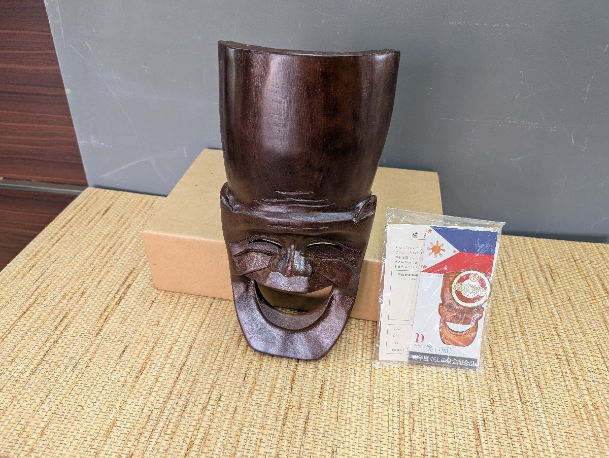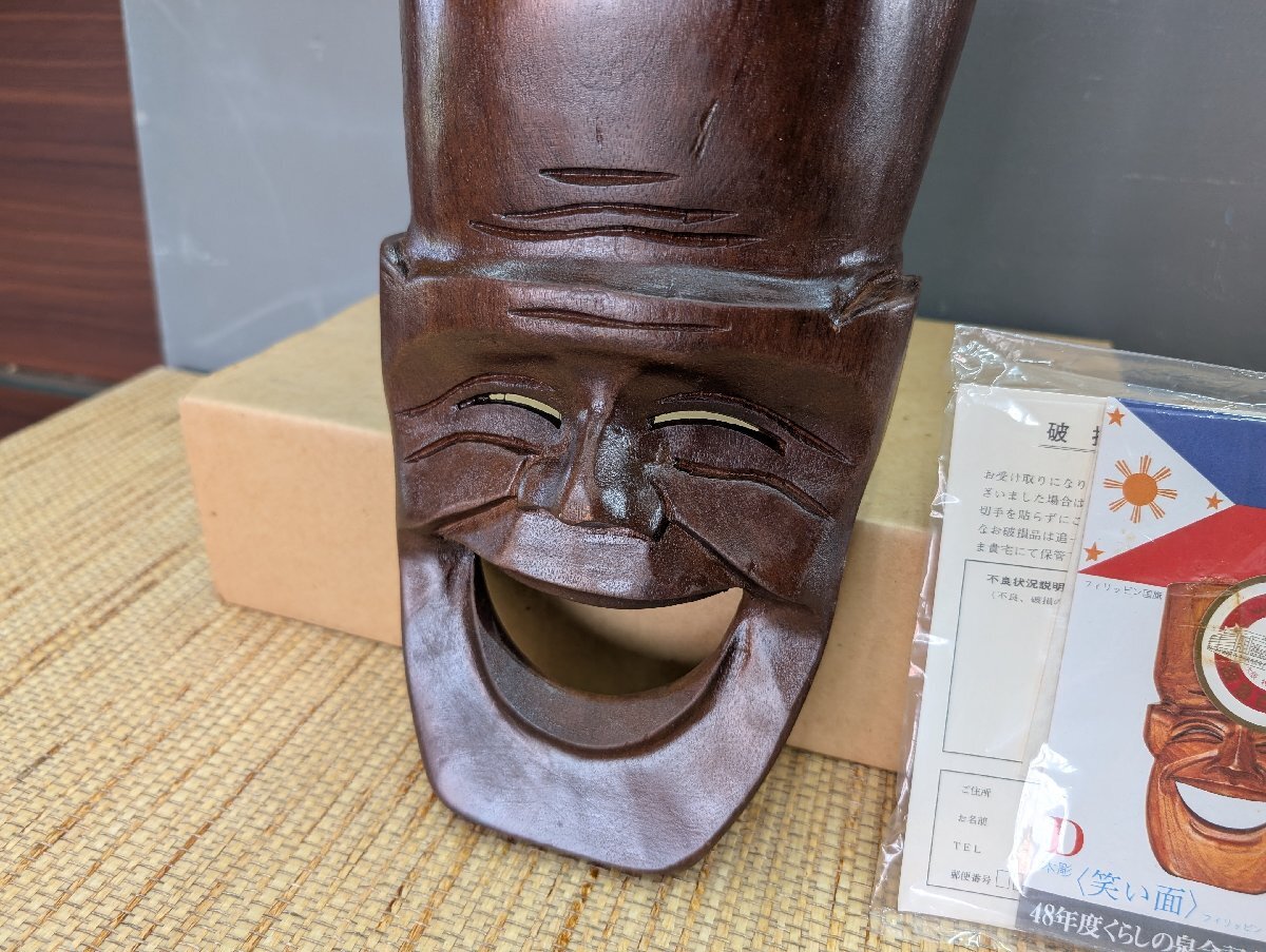 フィリピン製 木製 お面 笑顔のマスク 笑顔 壁飾り