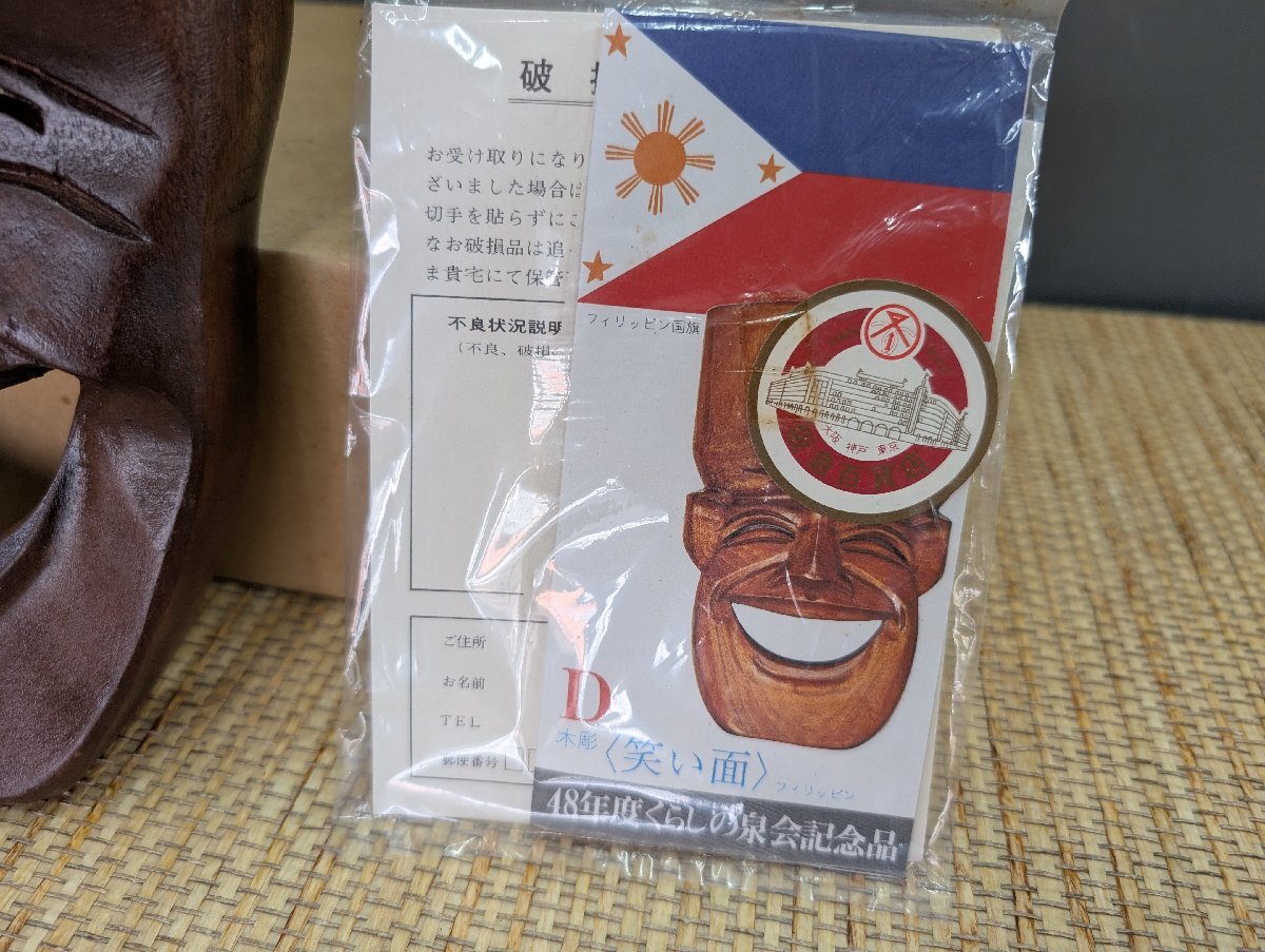 フィリピン製 木製 お面 笑顔のマスク 笑顔 壁飾り