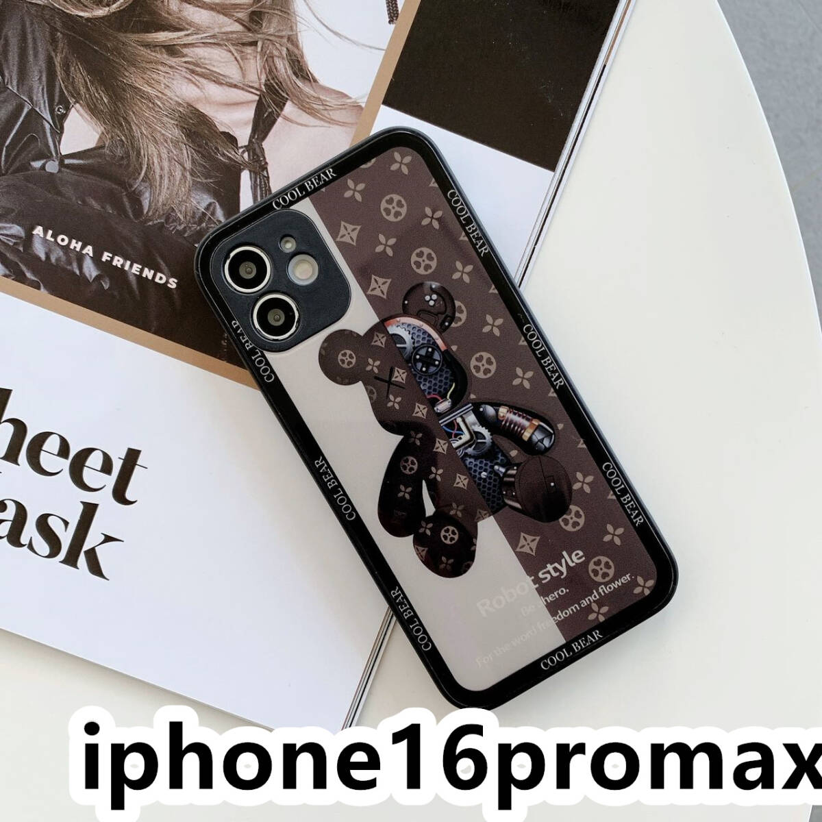 iphone16promaxケース カーバー TPU 可愛い 熊 ガラス お洒落 軽量 ケース 耐衝撃高品質ブラウン