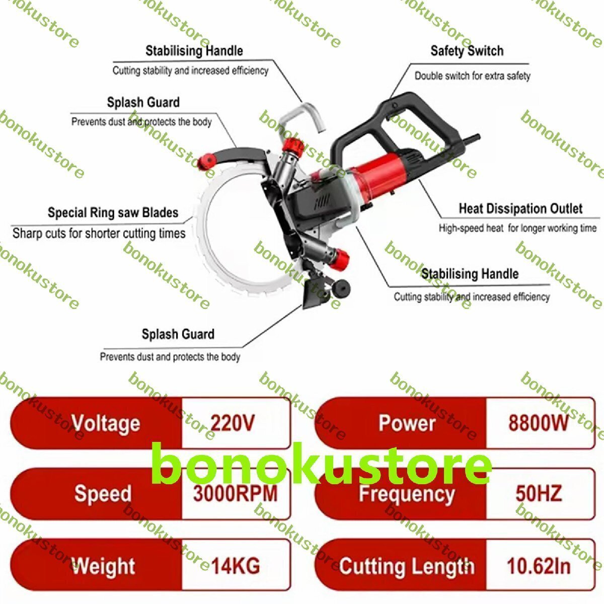 電動コンクリートソー、9500Wコンクリートリングソー、水流粉塵抑制付き湿式コンクリートソー、トロイダルコンクリートソー、切断深さ270MM、石、木材、磁器用